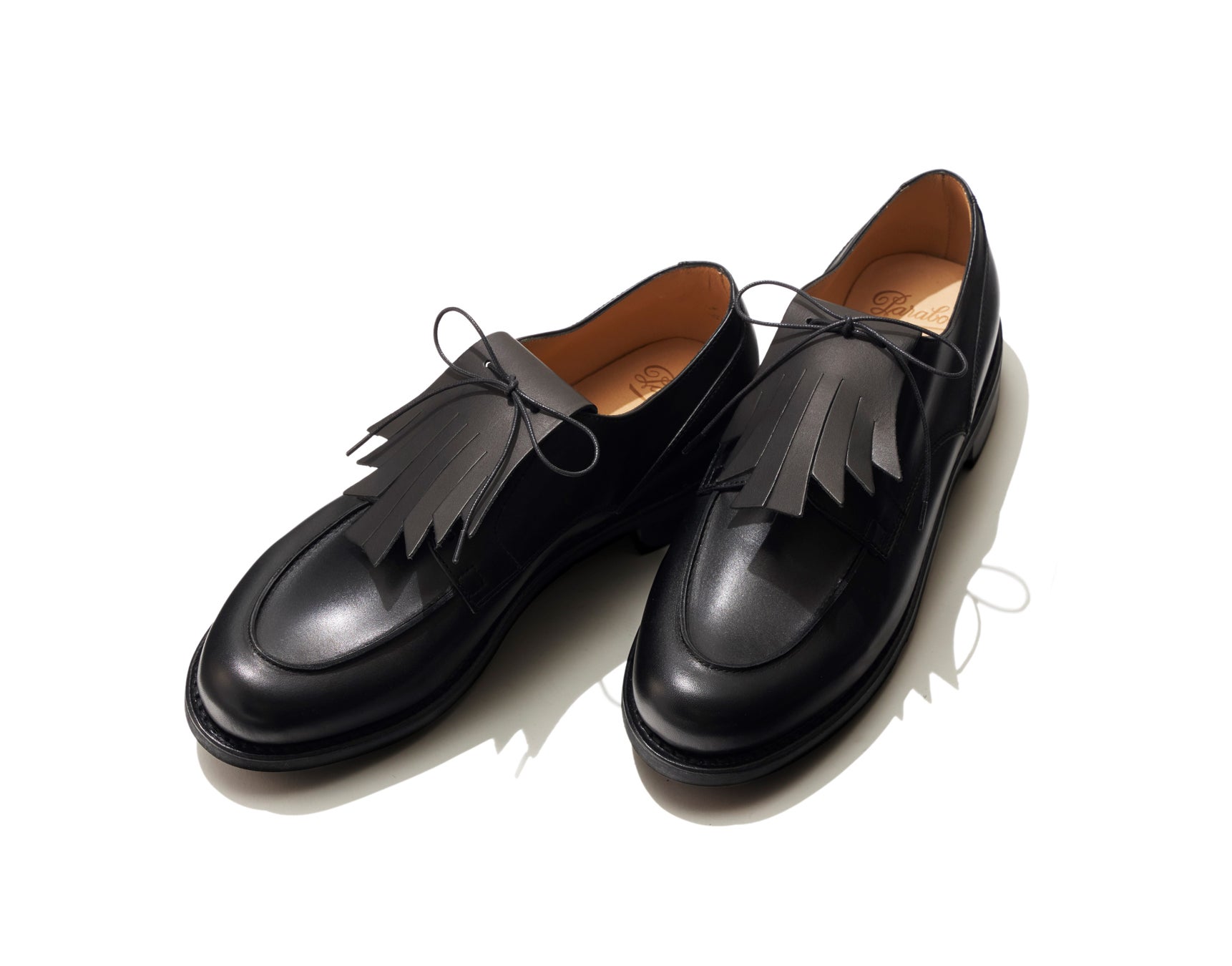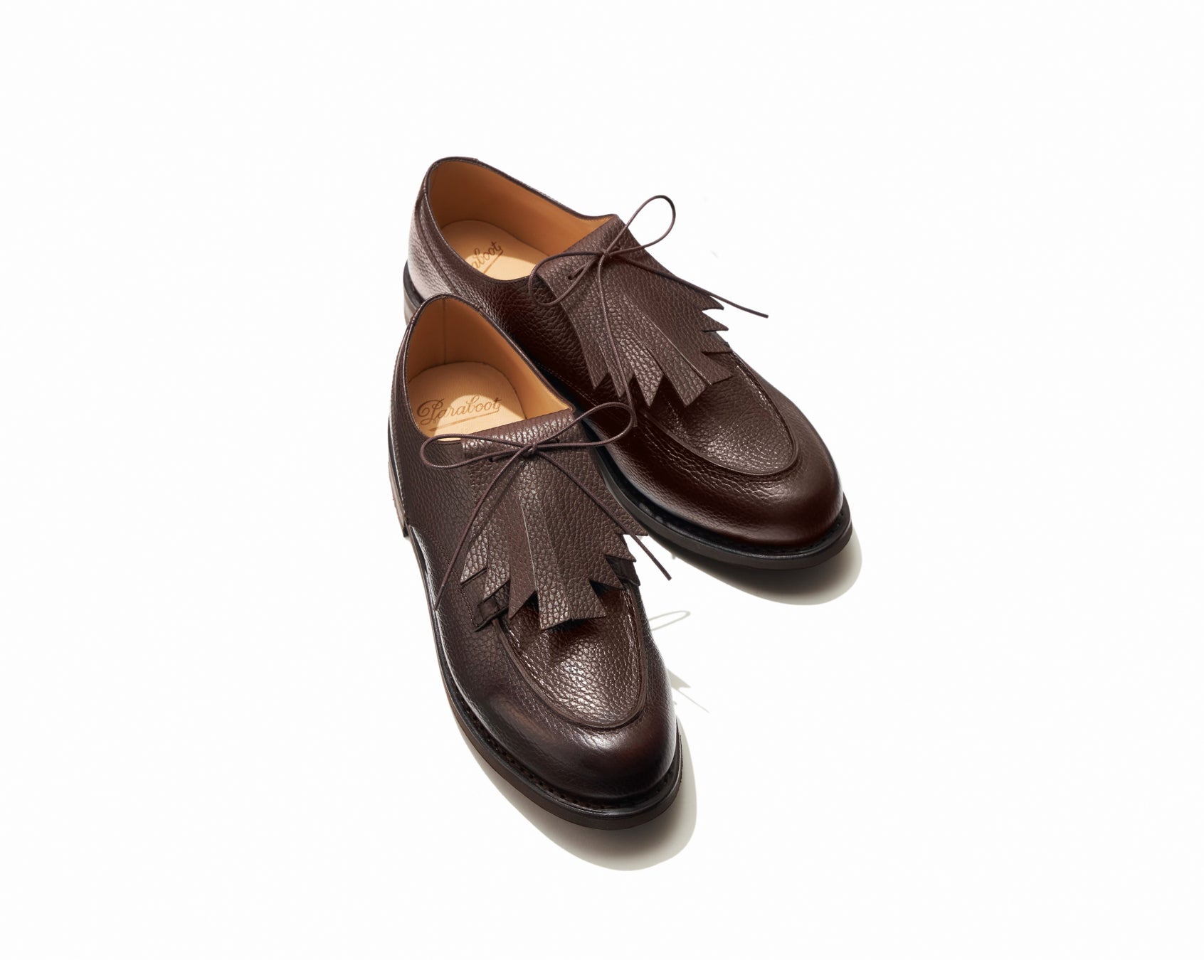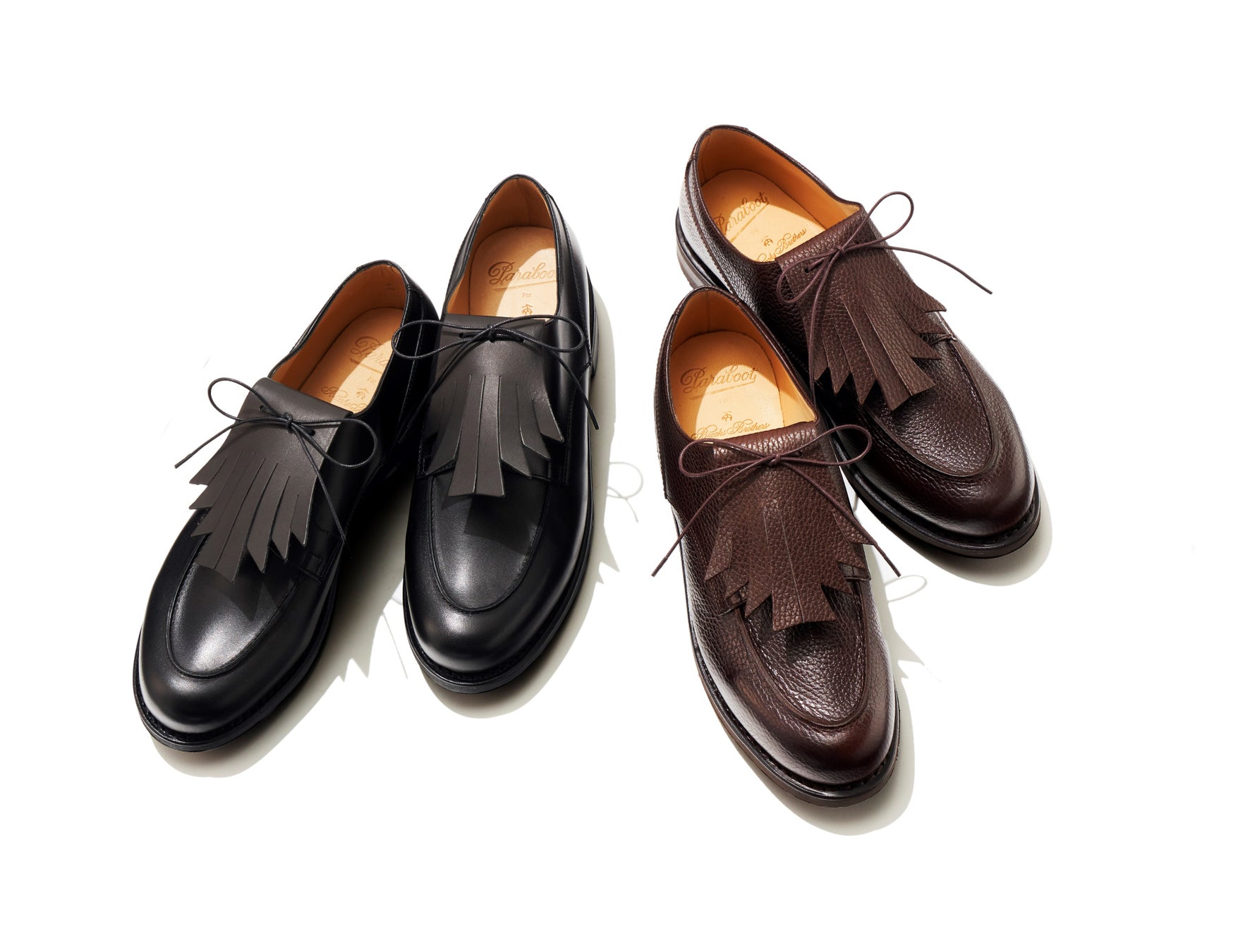 数多いパラブーツの人気モデルの中から、今回のコラボレーションにおいてセレクトされたのは、ドレスからカジュアルまで幅広いスタイルに対応する“シャンボード”。また、通常モデルではノルウェイジャン製法で作られているシャンボードの、グッドイヤー製法のモデルを採用。ドレッシーで都会的な雰囲気に仕上げられている。さらに、取り外し可能なキルトをあしらったクラシックなデザインは、ブルックス ブラザーズファンだけでなく、アメトラ好きや靴コレクターなら必ず入手したい希少なコラボアイテムとなっている。