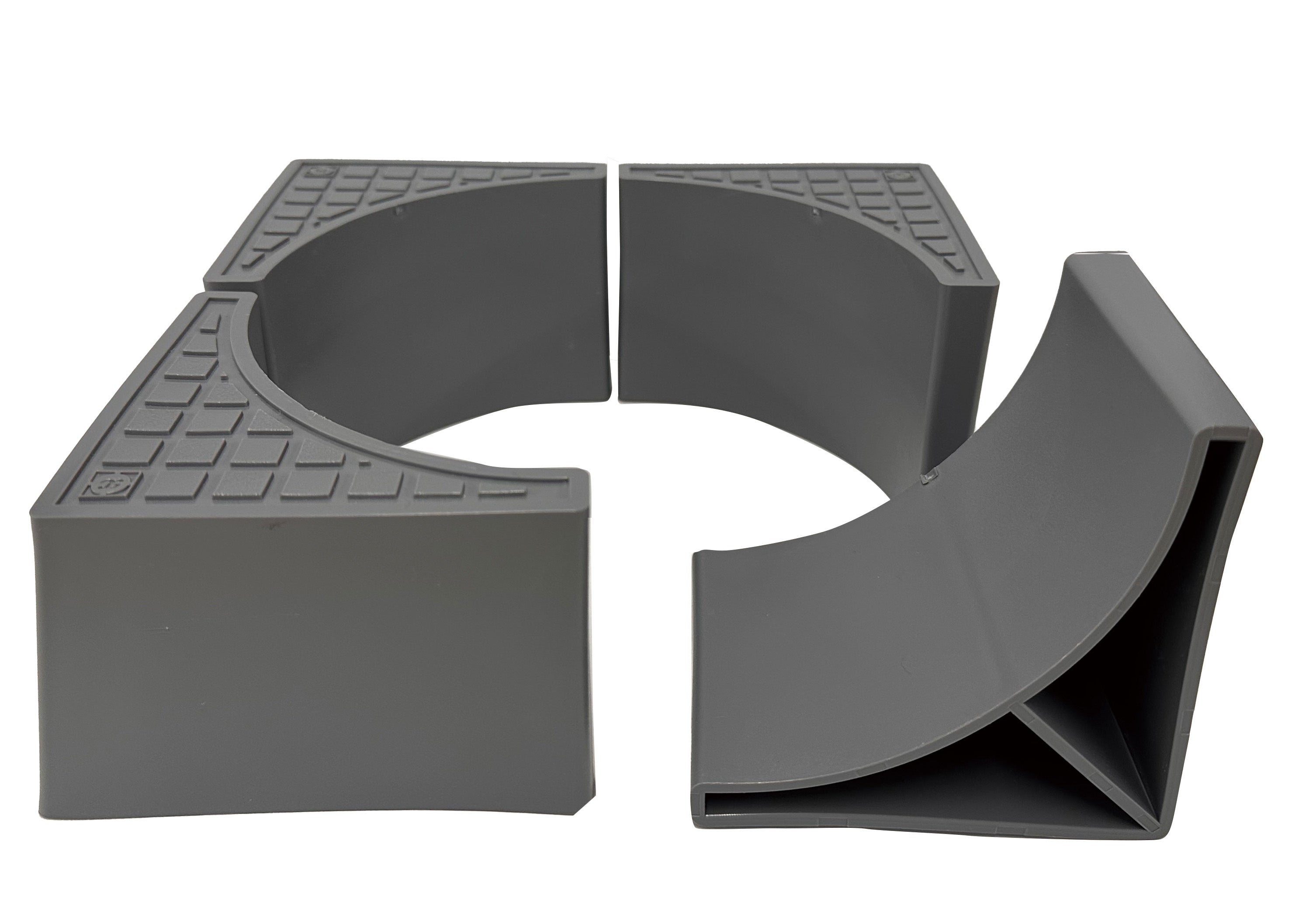 「インサル マスキューブ」は、桝に外付けする高密度ポリエチレン製の副資材です。本製品は丸い桝をキューブ型に囲うことで、桝周辺の石材加工が直線的なカットのみとなり、従来1個あたり30分を要する施工時間を約5分に短縮。施工時の効率化に貢献します。仕上がりに技術の差が出にくいため、経験を問わずDIYの場面でもご活用いただけます。また、クラックが発生するリスクを大幅に軽減し、加工時の騒音や粉じん発生も最小限に抑えることができます。車の乗り入れも想定した耐荷重設計で割れにくく、4分割構造なので急勾配な場所にも設置可能です。また、桝と同色のグレー・ライトグレーの2色展開で、エクステリアの美観を損ないません。