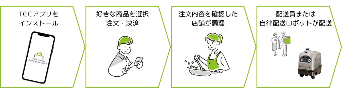また、今後段階的に開業する街の飲食店などから、TAKANAWA GATEWAY CITY内のオフィス等へデリバリーするサービスも開発中であり、2025年秋以降のサービス開始を予定しています。