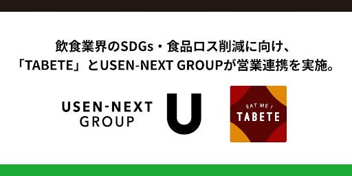 今回の営業連携では、飲食業界における食品ロス削減やSDGsの推進を目指し、相互で連携を図るものです。USEN-NEXT GROUPが保有する飲食店のクライアントや、SDGsや食品ロスにおいて課題を抱える企業に対して「TABETE」 の紹介を実施することで、課題解決へ向けた支援を行います。