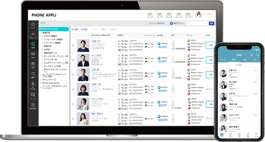 株式会社PHONE APPLIは「コミュニケーション改革で、働きかたをアップデートする」をビジョンに掲げ、多様な働き方の実現を目指す働き方改革推進企業様をサポ―トいたします。8年連続国内シェアNo.1の Web電話帳クラウドサービス「PHONE APPLI PEOPLE」の開発、販売、自社オフィス「CaMP」での実証実験、世の中の働き方改革調査などを通じ、企業文化の変革や企業価値の向上を目指します。