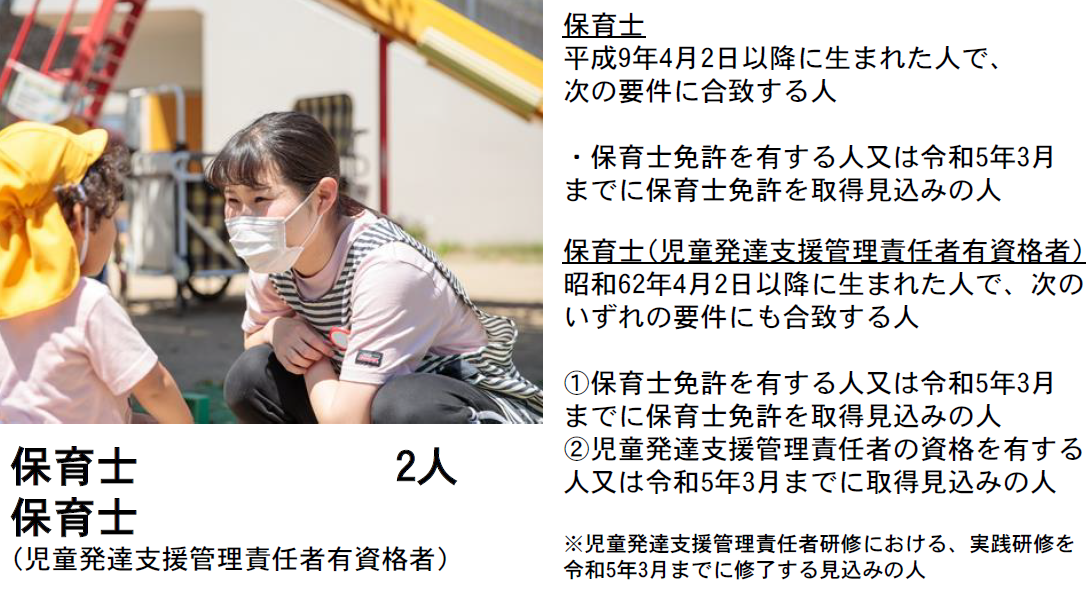 - 保育士(児童発達支援管理責任者有資格者含む)2人