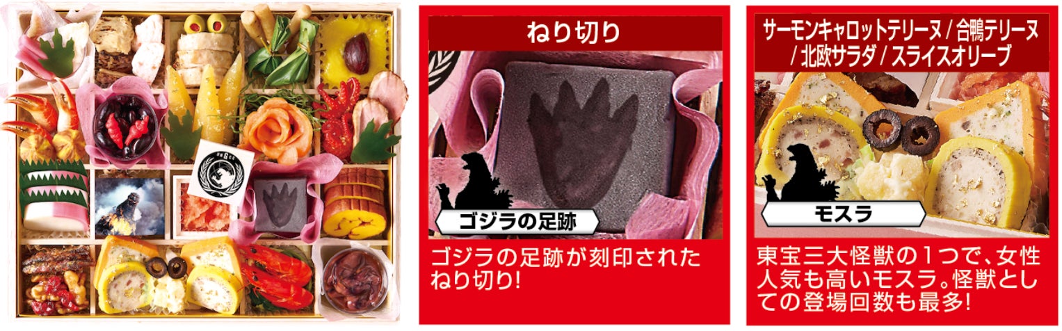 周年記念作品のモチーフが満載の「ゴジラおせち2025」数量限定で予約開始