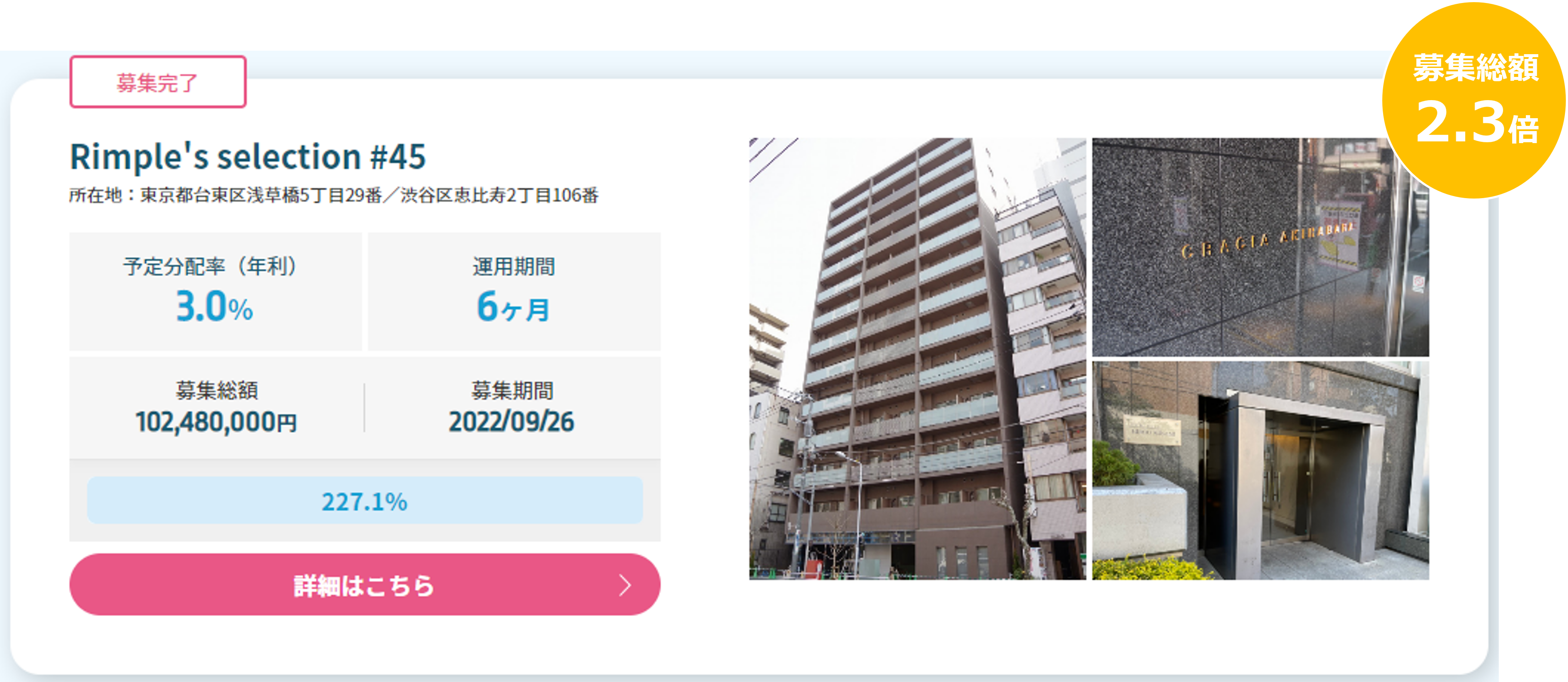 Rimple’s Selection#45募集総額227.1%の2.3億円の応募