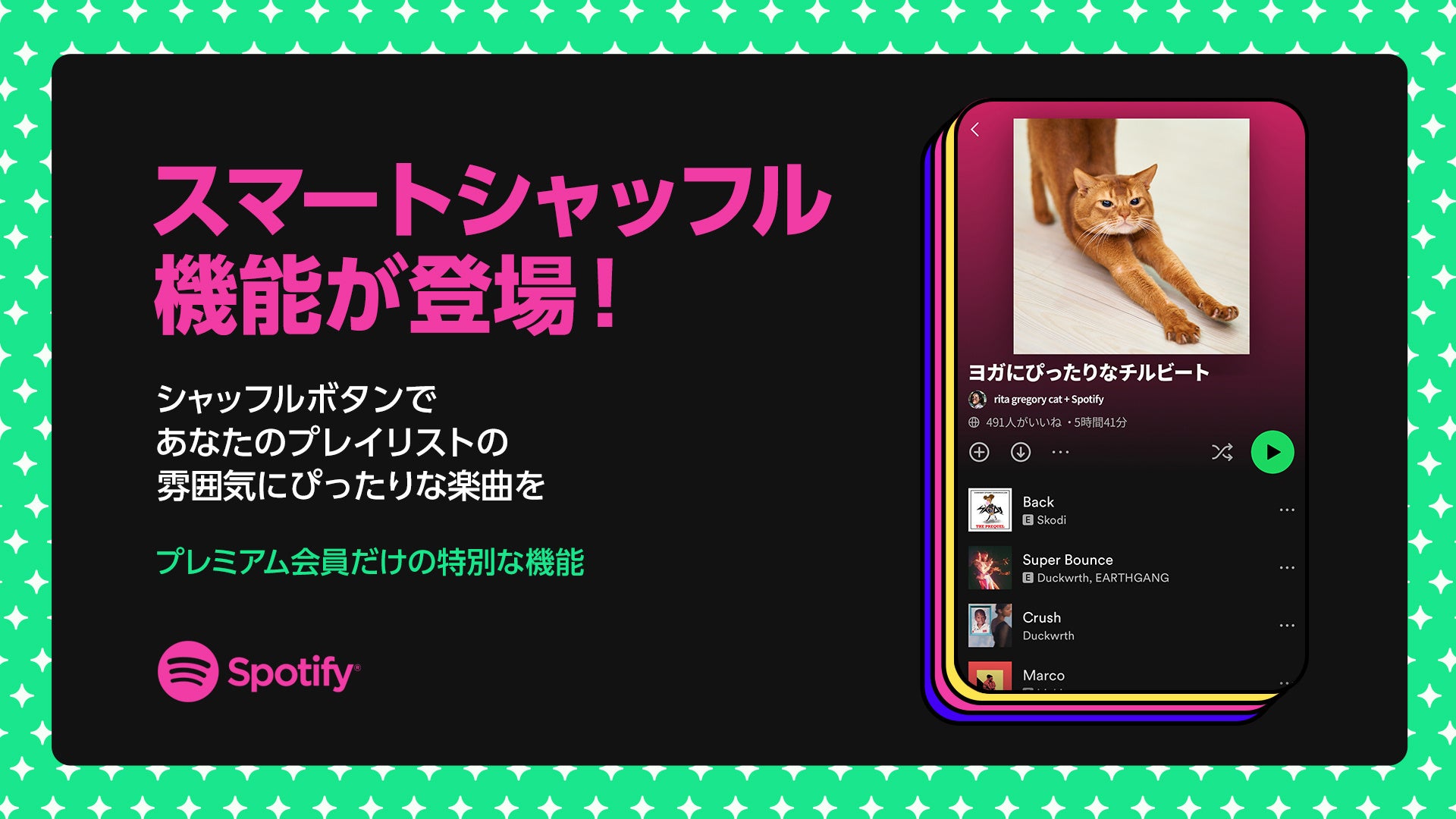 Spotify、ユーザーが作成したプレイリストに合ったレコメンド曲をミックスし、シャッフル再生してくれる新たなリスニング機能「スマートシャッフル」を国内でも提供開始