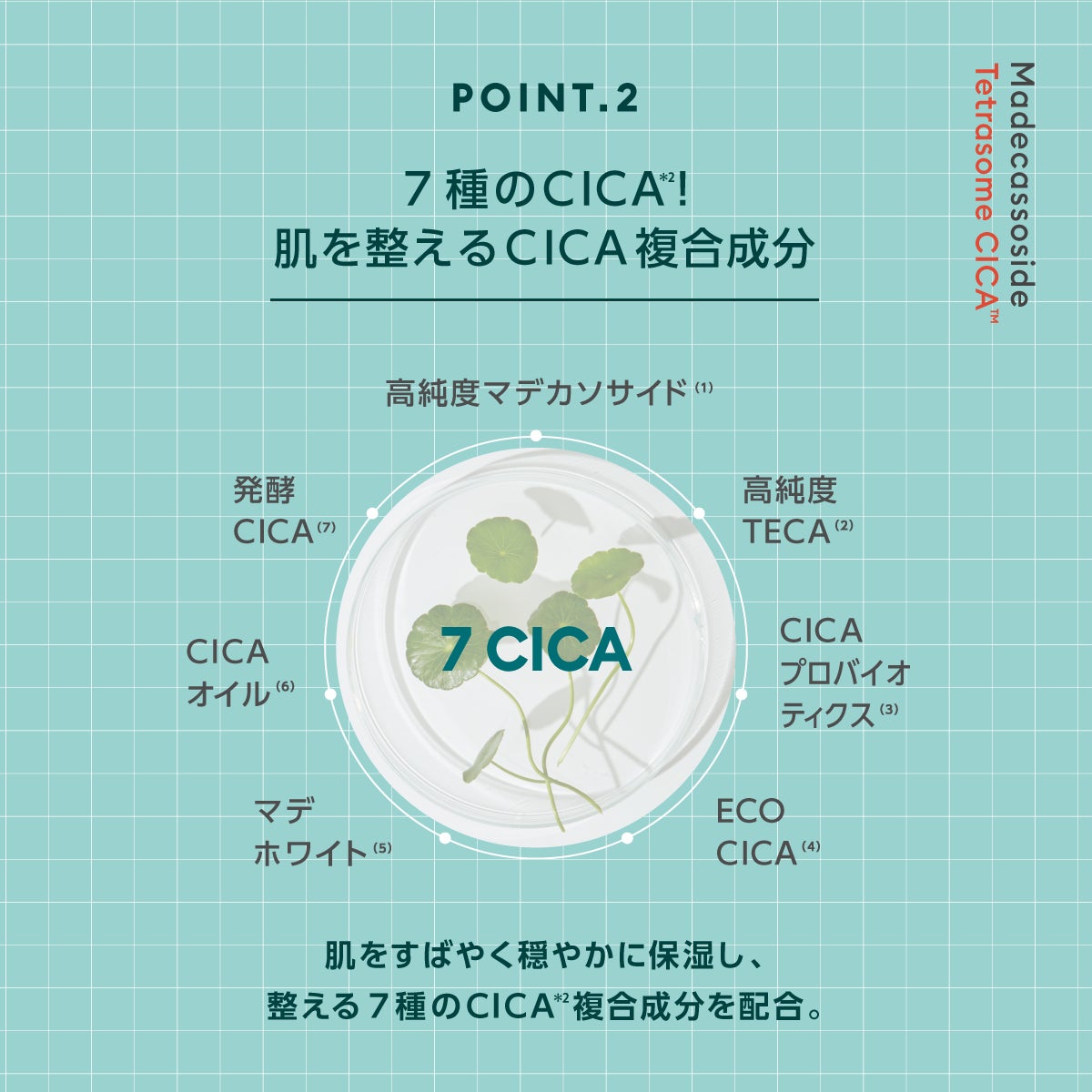 肌を整える7種のCICA*²複合成分が肌トラブルをケアし、健やかな肌状態を保ちます。