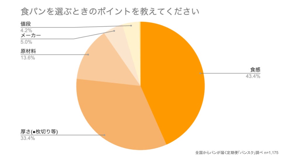 ・食パンを選ぶ基準は「食感」43%、「厚さ」33%でその2つが7割強を占めた。