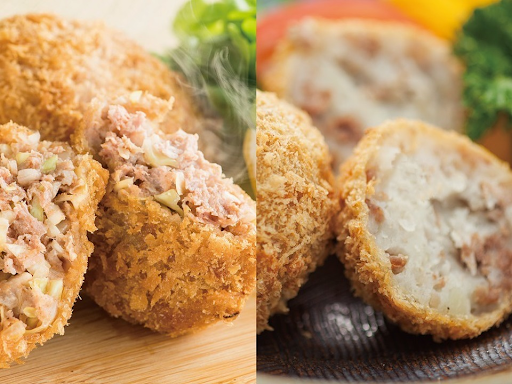 直売店で大人気の観音池ポークメンチカツとコロッケの揚げたてを冷凍パックしました。メンチカツはお肉、野菜がたっぷり入ってジューシーな肉汁とふんわりした食感が絶妙。コロッケはホクホク食感でほんのり甘く、優しい味です。レンジでカンタン温めるだけですのでお弁当のおかずにも最適です。