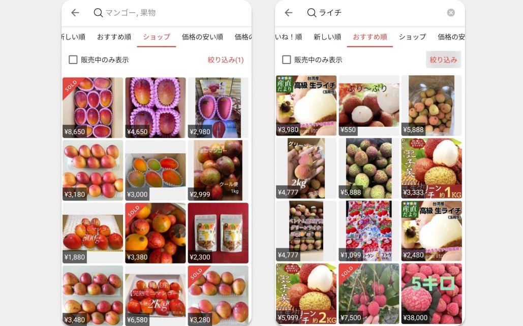 「メルカリShops」では、マンゴーやパッションフルーツ、ライチなど、スーパーではなかなか見かけない、少し珍しい南国フルーツも販売されています。旬のフルーツは「メルカリShops」でも人気商品のひとつです。