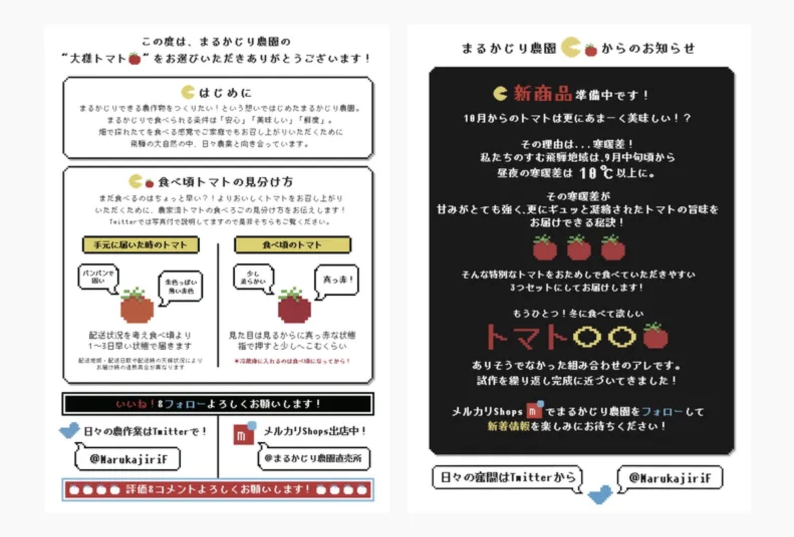 ショップの紹介や商品のこだわり、おすすめの食べ方・使い方などについて記載したチラシを作って同梱することで、ショップを覚えてもらえたりリピートしてもらうきっかけが生まれます。