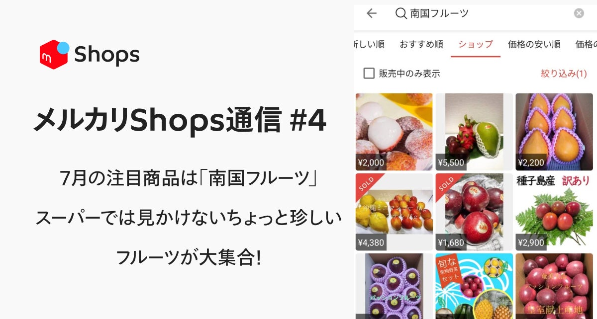 「メルカリShops」のトレンドや注目商品、おすすめショップ、キャンペーンなどをご紹介する「メルカリShops通信」。第4回目は、暑くなるこれからの季節に食べたい「南国フルーツ」をご紹介します。