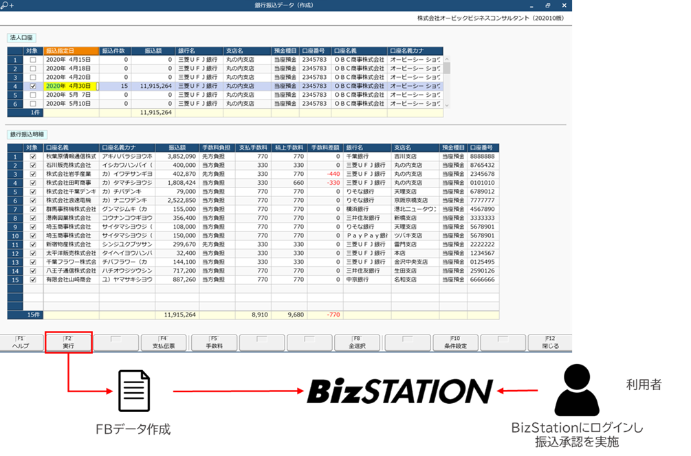 現在、『勘定奉行クラウド』と『BizSTATION』は、IDやパスワードを登録することなく、 利用明細や残高情報を自動取得でき、安全かつ便利に入出金仕訳入力の完全自動化を行っておりますが、今回新たに「奉行クラウドシリーズ」と総合振込APIで連携を開始します。