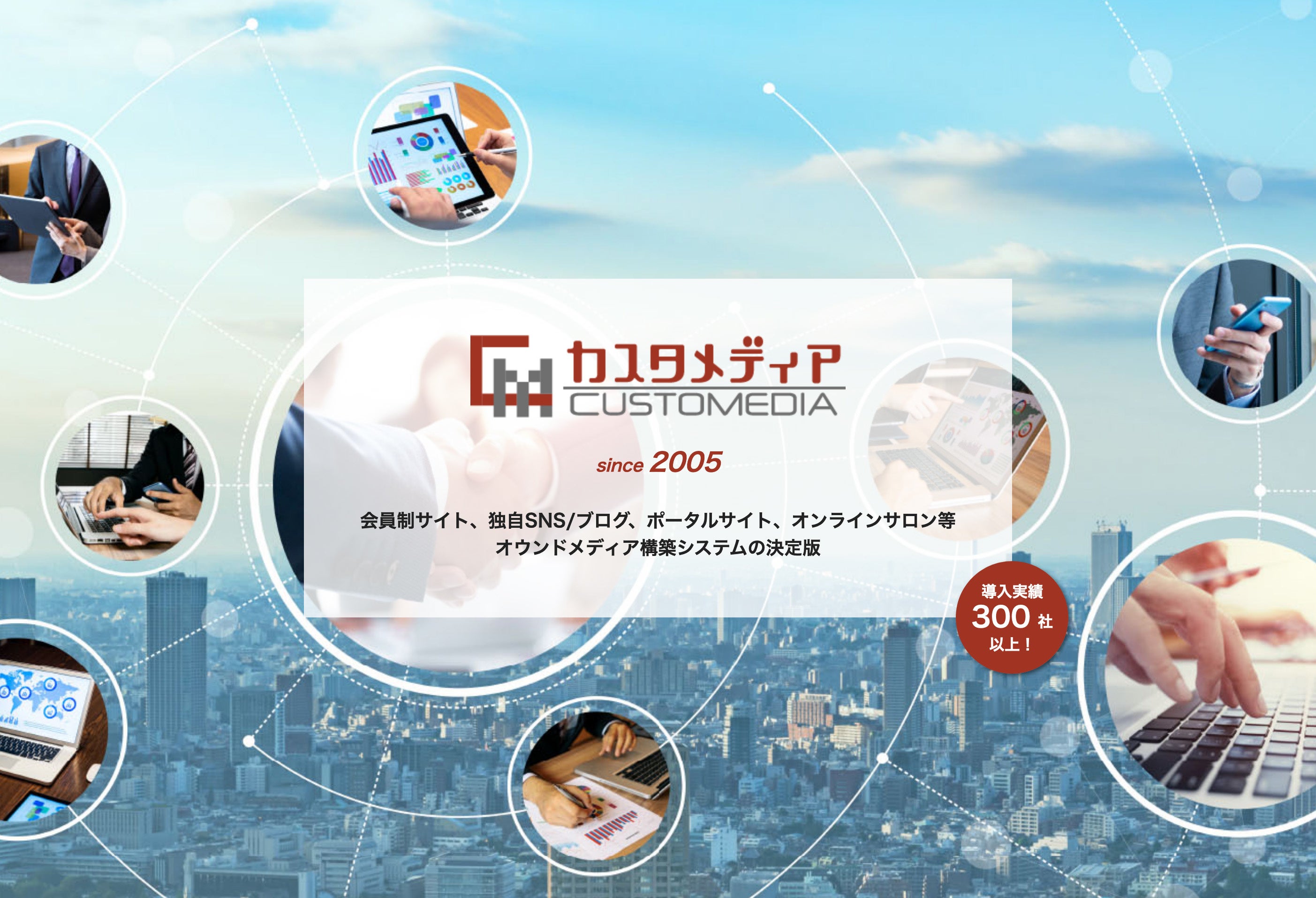 株式会社カスタメディアは、東京・大阪・神戸に事業拠点を置き、SNS勃興期より、SNSを人と人とを繋ぐためだけのツールではなく情報の流れを確信する新たな“メディア”として捉え、SaaSながら多種多様な構築ニーズに応え柔軟にカスタマイズできる会員制サービス構築エンジン「カスタメディア(CUSTOMEDIA)」を世に先駆けて開発しました。