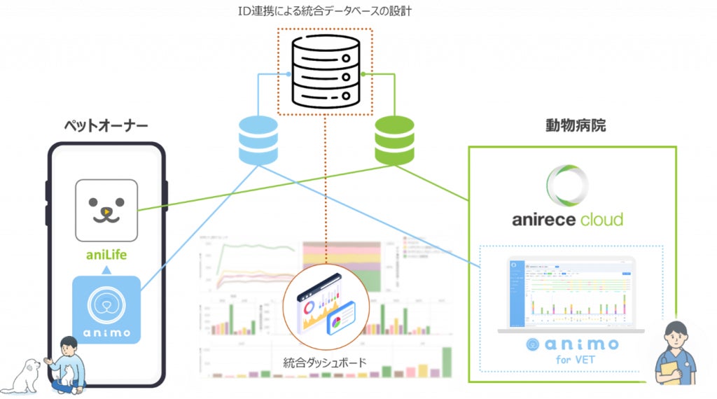 animoが開発中のanimo platform(animo owner appおよびanimo for VET)と、アニコムグループのアニコム パフェ株式会社(本社:東京都新宿区、代表取締役社長 安宅 快、以下 アニコム パフェ)が提供するアニレセクラウド等のシステム連携を通じてanimal-PHRとEHR/EMR連携を実現し、動物病院とペットオーナー間の円滑な情報共有による新たな診療体験の提供と、RWD活用の促進による個別医療の最適化を目指します。