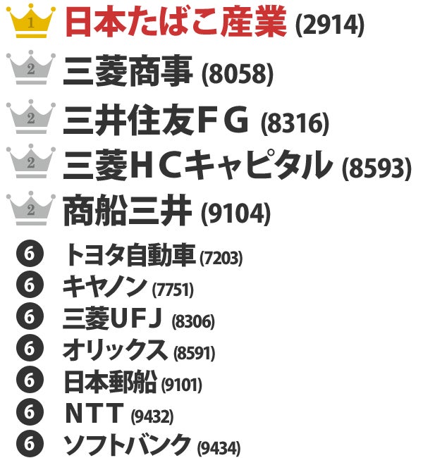 【「あなたの好きな配当株は?」日経CNBC 投資家アンケート】1位は日本たばこ産業(JT)、商社やメガバンクも人気