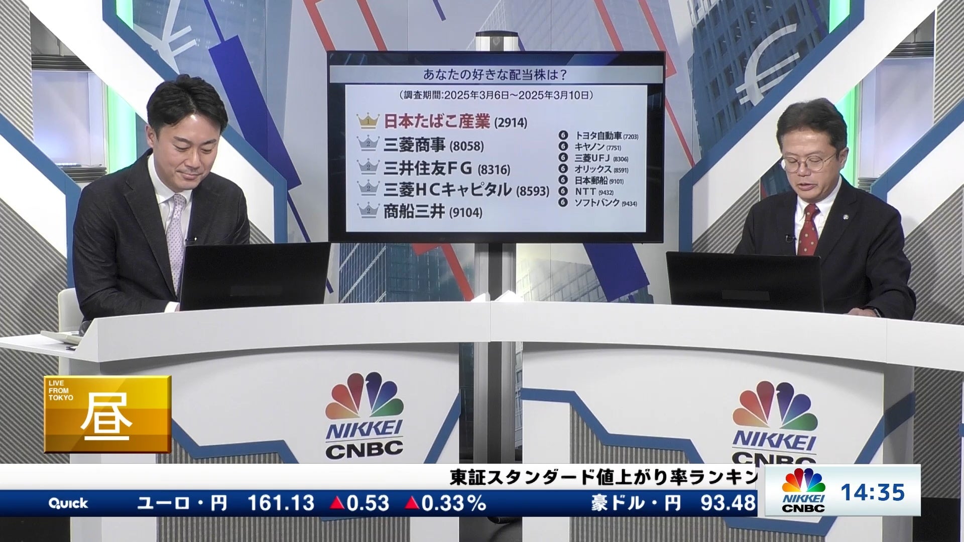 株式会社日経CNBC(本社:東京都千代田区、代表取締役社長:竹之内源市)は2025年3月12日、現役の投資家を対象に2025年3月6日~3月10日にインターネットで実施した「好きな配当株」に関するアンケート結果を発表しました。結果は以下の通りです。