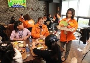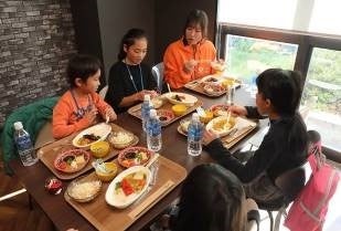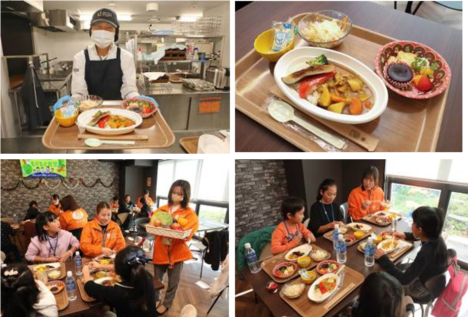 ランチタイムでは、会場の食事付き学生マンションで働く調理スタッフ(当社グループ社員)がつくった焼き野菜を使ったチキンカレーを堪能しました。子どもたちも食べやすいようにと小学校の給食のレシピを取り寄せ、心を込めて作ったこだわりのメニューです。子どもたちからは「美味しい」や「苦手な野菜が食べられた」など好評いただき、おかわりしてくれた子もいました。