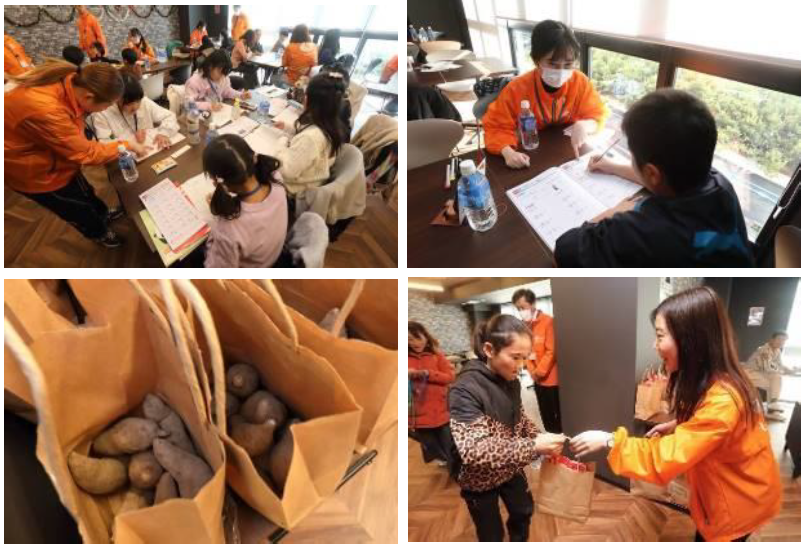 イベント閉会の挨拶の後は形が悪い、サイズが少し小さいなどの理由でそのままでは廃棄される美味しいさつま芋(紅はるか)を参加者全員にお土産としてお渡ししました。先ほどのカレーにも入っていたもので、フードロスでの学びを経た子どもたちからは「美味しいのにもったいない」といったお声をいただきました。