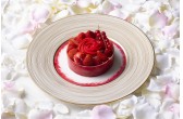 ピンク色のいちごのムースの中にはライチのジュレとローズのソースが。ほんのりローズが香ります。