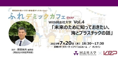 ふれデミックカフェは、研究者をお招きし、研究内容について観客参加型でディスカッションを行うサイエンスカフェ形式のイベントです。同志社大学協力のもと開催する7月20日(木)のふれデミックカフェは、同志社大学経済学部の原田 禎夫 准教授をお招きし、プラスチック汚染の解決に向けて、世界ではどんな取り組みが進んでいるのか、私たちにできることは何か、国内外の事例をもとにわかりやすく解説いただきます。