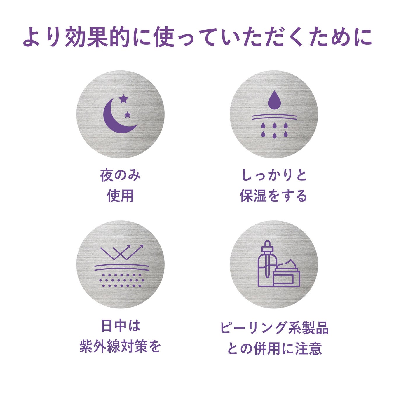 3種類のレチノイド(レチナール、レチノール、パルミチン酸レチノール)を配合した美容液。