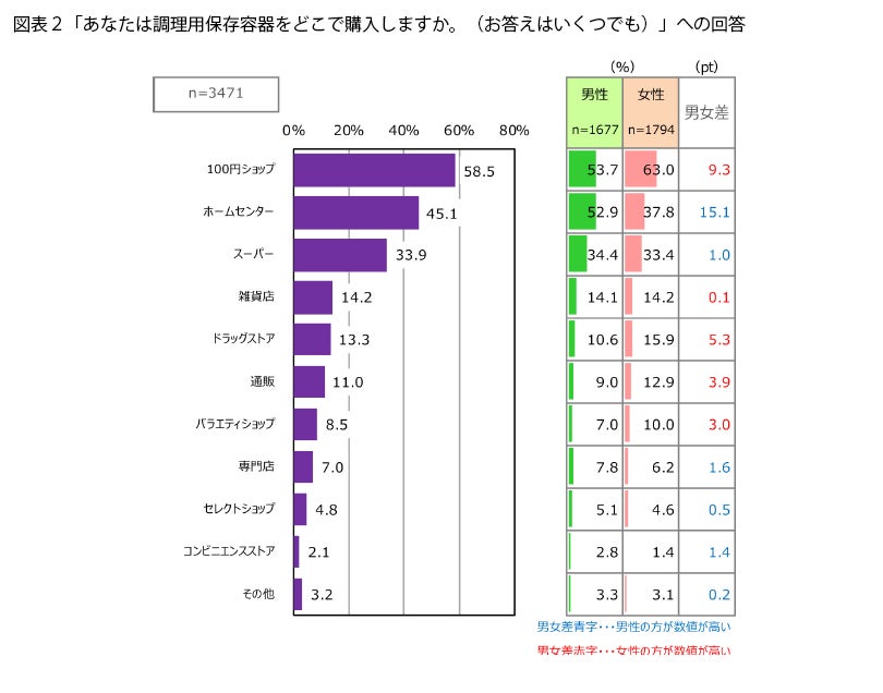 次に、保存容器をどこで購入しているかを聞きました(図表2)。