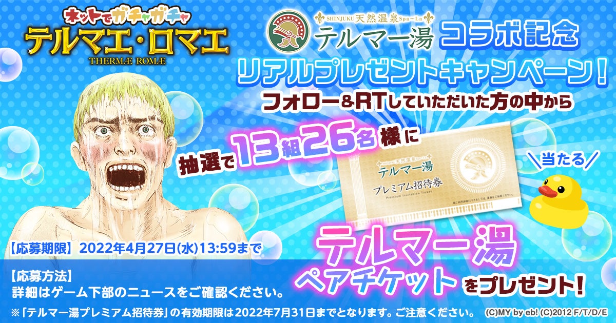 テルマー湯xテルマエ・ロマエ ガチャ 期間限定コラボイベント開催