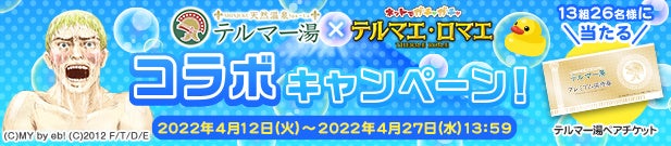 株式会社フジゲームス(本社:東京都江東区、代表取締役社長:吉本 治)は、2022年4月12日(火)より株式会社エコナックホールディングス株式会社(本社:東京都港区、取締役社長:鈴木 隆太)が運営する「テルマー湯」とのコラボイベントを開催します。