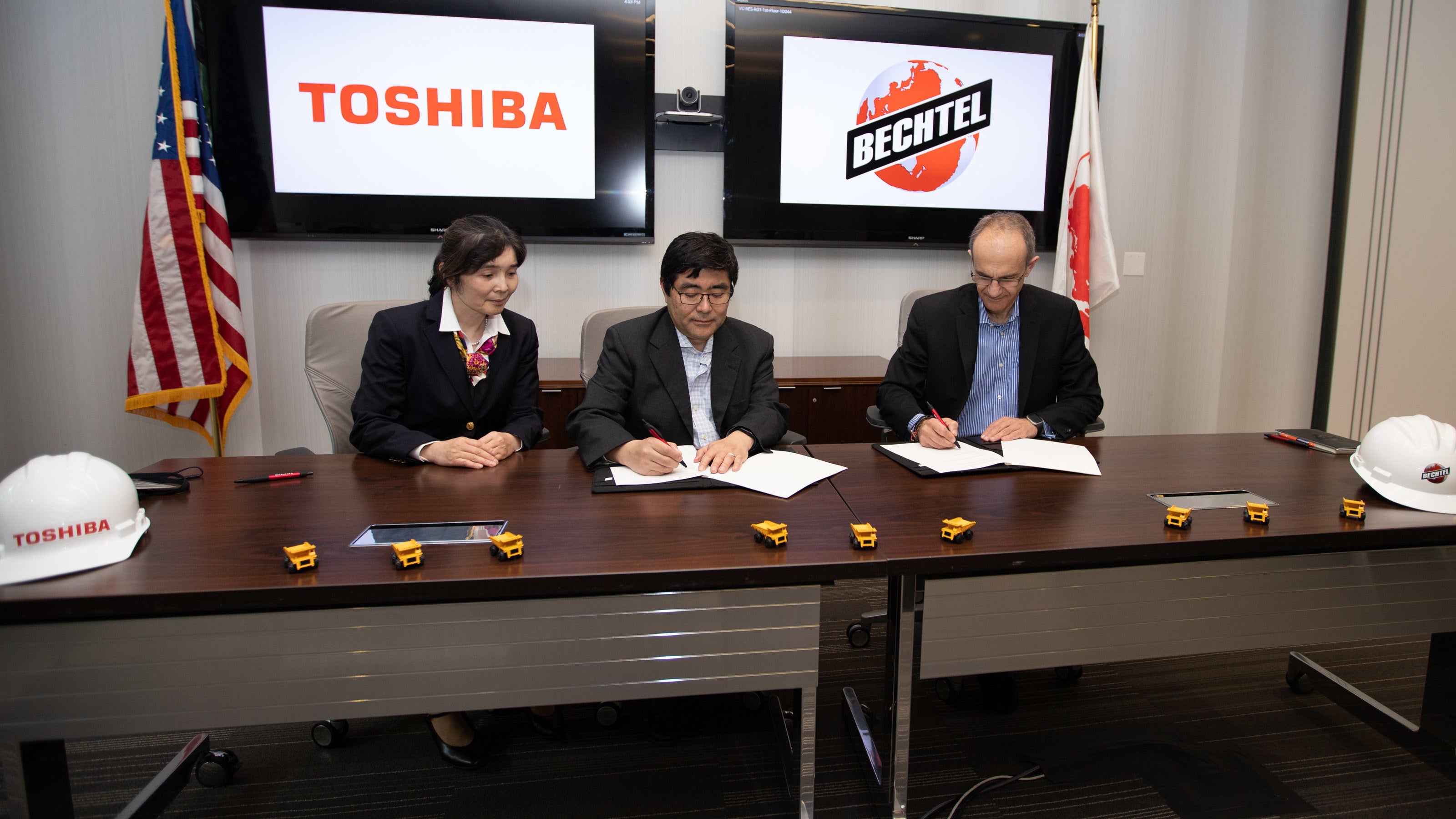 TAES社長 高木 健太郎(中)、ベクテル社原子力事業部長:アフメット・トピナ氏(右)