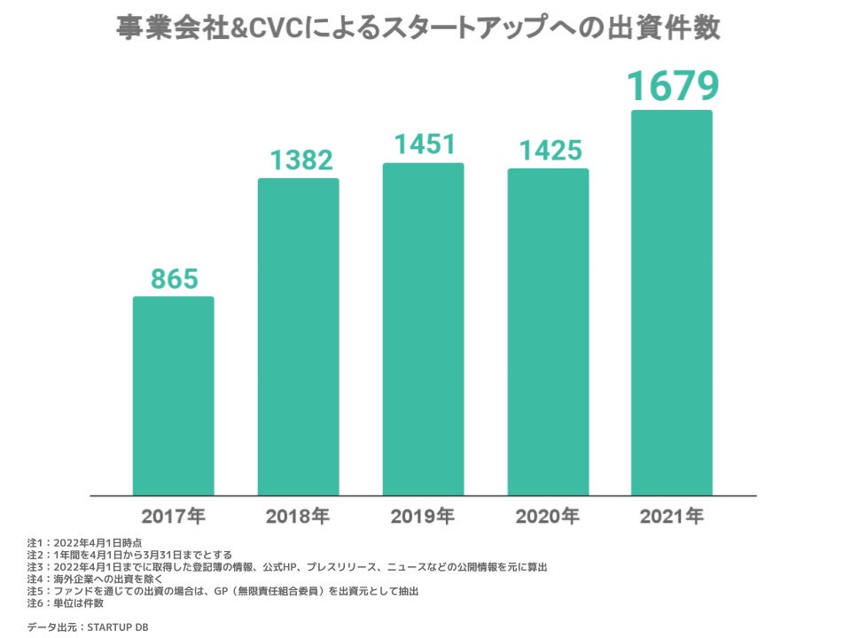 【STARTUP DB調査報告】事業会社とCVCによるスタートアップ出資件数は過去5年間で865件から1,679件に倍増!その背景とは?