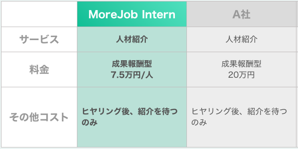 More Job Internの費用は、成功報酬型の一人あたり7.5万円(税抜)です。(入社・初出勤するまで料金は発生しません)