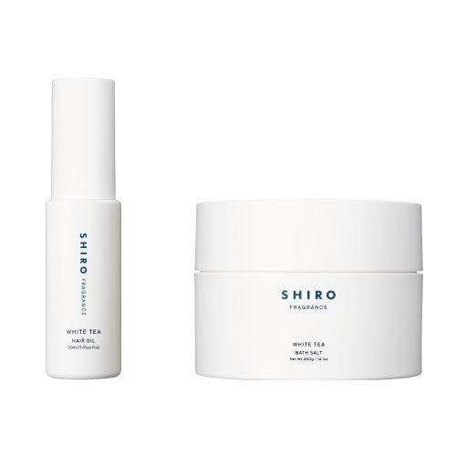 新たにラインナップに加わる2アイテム「ホワイトティー ヘアオイル」は乾燥した髪にツヤと潤いを与え、「ホワイトティー バスソルト」は南オーストラリア産の天日塩が肌を保湿しながら身体を温めます。
