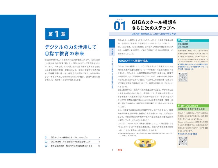 本書では、GIGA第2期で期待されている新たな学びの在り方や自治体の役割、端末調達の流れやポイントについて、文部科学省から発表されている各種資料の内容を紐解き、わかりやすく紹介しています。