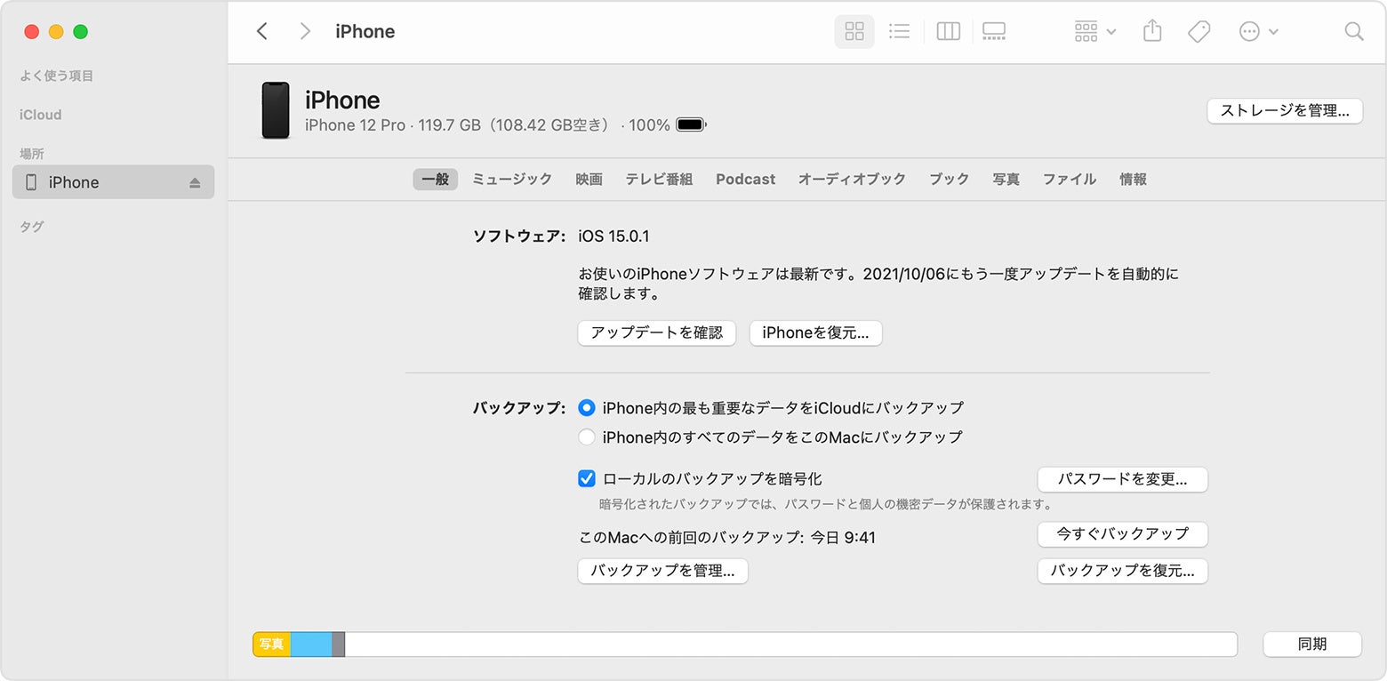 方法2:使っているiPhoneと接続してiTunesでデータをバックアップ