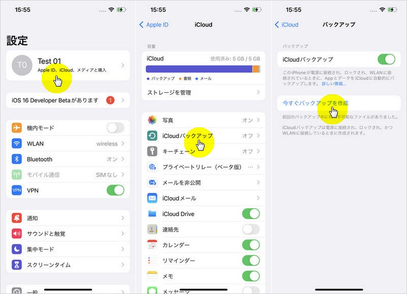 方法3、iCloudを利用してiPad本体でデータをバックアップする