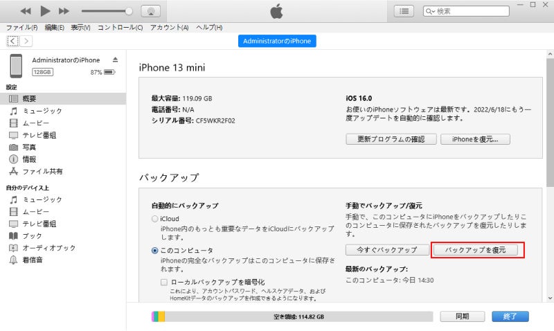 ●方法2:iTunes経由で新しいiPhoneにデータを復元