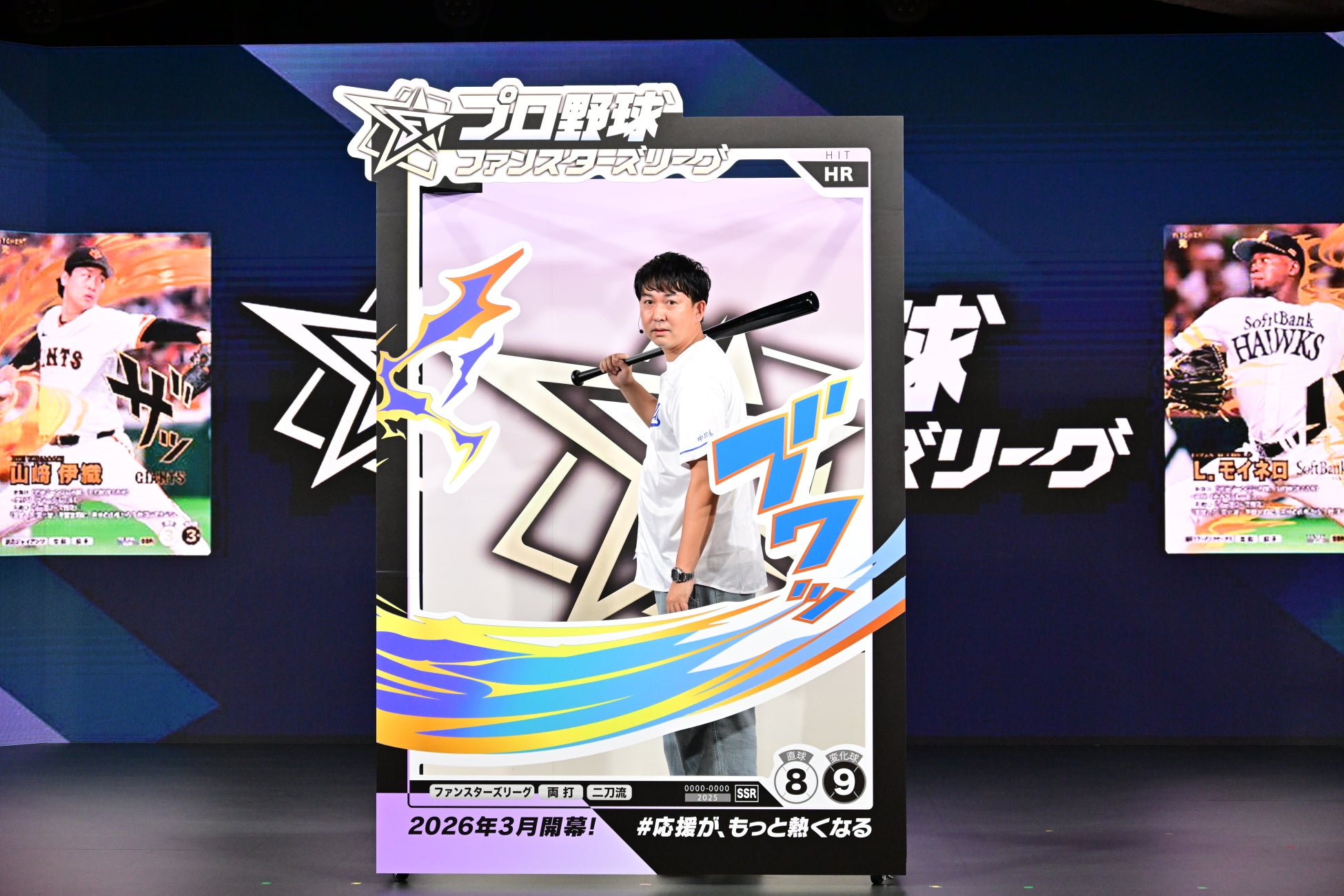 最後には、里崎さん、バッテリィズ、そしてバンダイの2名がステージに揃い、華やかなフォトセッションを実施。背景スクリーンには「ファンスターズリーグ」のロゴと12球団カードのビジュアルが映し出され、まるで新サービスのCM撮影の一幕のような世界観を演出。今後のプロ野球観戦を変えていく期待感が一層高まるフィナーレとなった。