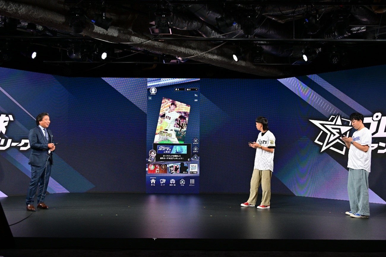 イベントのクライマックスでは、リリース時に商品展開を予定しているプロ野球12球団のリアルカードデザインが大型スクリーンでお披露目。