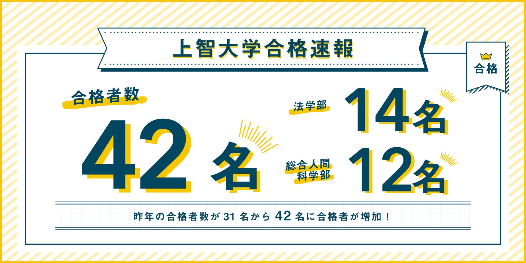 そんな中、Loohcs志塾は上智大学に計42名(法学部14名、総合人間科学部12名)の合格者を輩出することができました。
