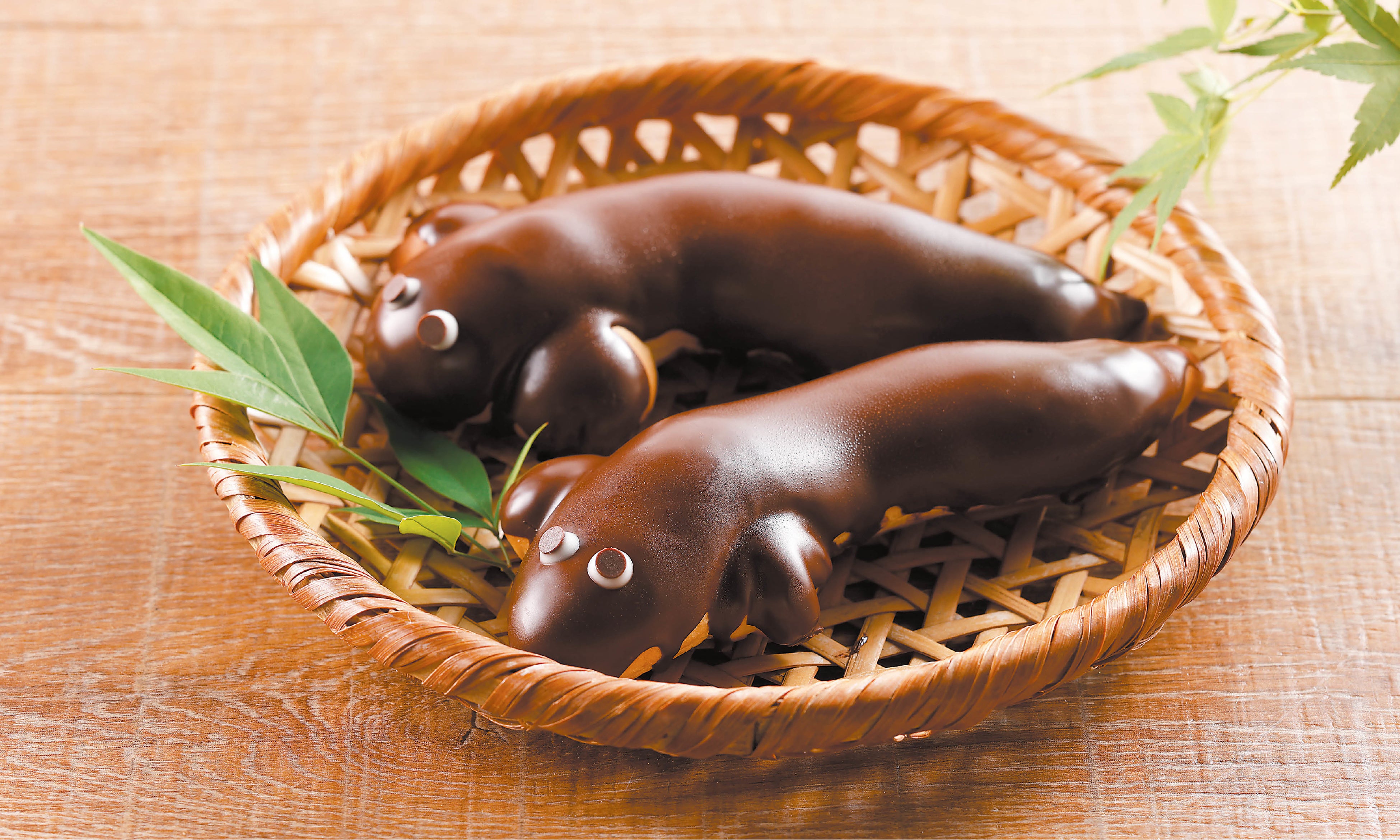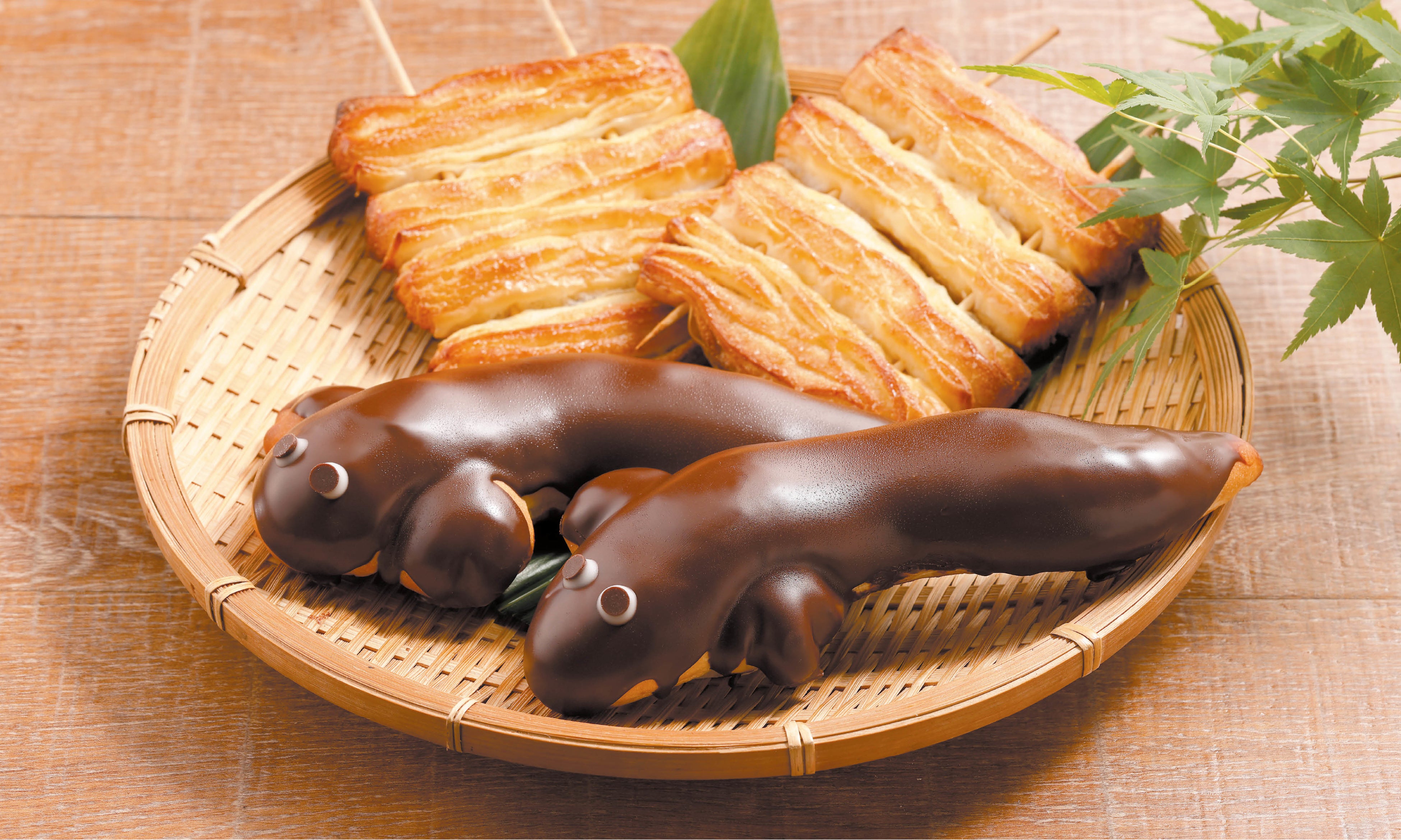 「うなぎぱん」はパンの表面をチョコレートでコーティングすることでうなぎの表皮のてりや色味を表現し、今にも動き出しそうなうなぎそのものの見た目を再現いたしました。ふわふわのパン生地にチョコチップを練りこみ、ふわふわ食感にコーティングしたチョコのパリパリ食感をお楽しみいただけます。