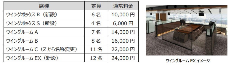 グループでの観戦時において指定席へのニーズが増えていることから、スタンドL-WING 4階指定席エリアをすべてグループ席(半個室タイプ)に改修します。4名・6名・12名定員の指定席を新設し、ご利用される人数に応じて様々な席種からお選びいただけます。