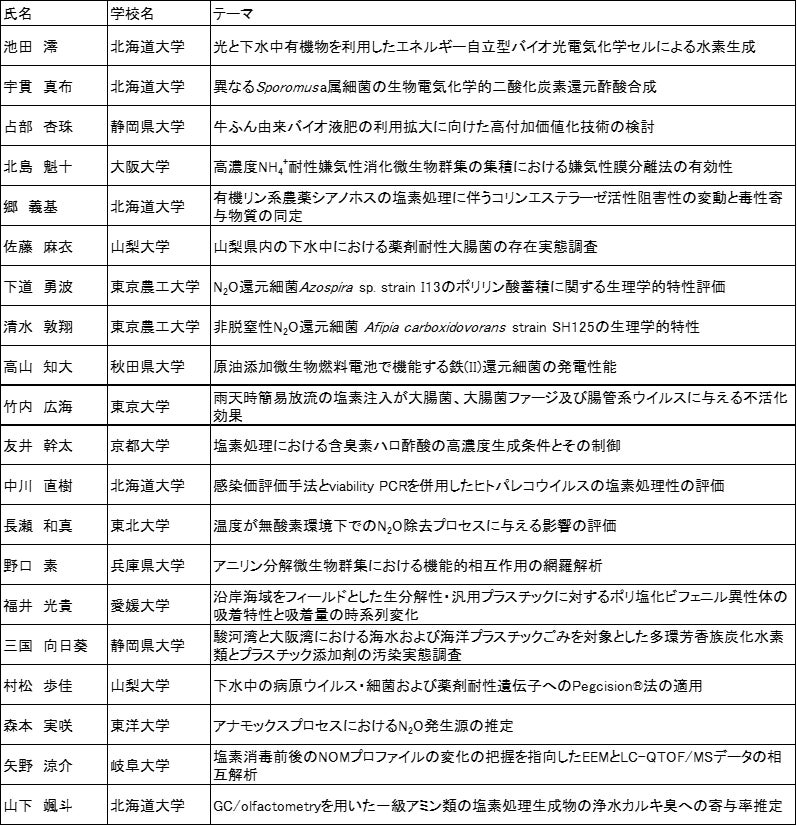 (氏名は五十音順・テーマ名称は「日本水環境学会」講演プログラムより)