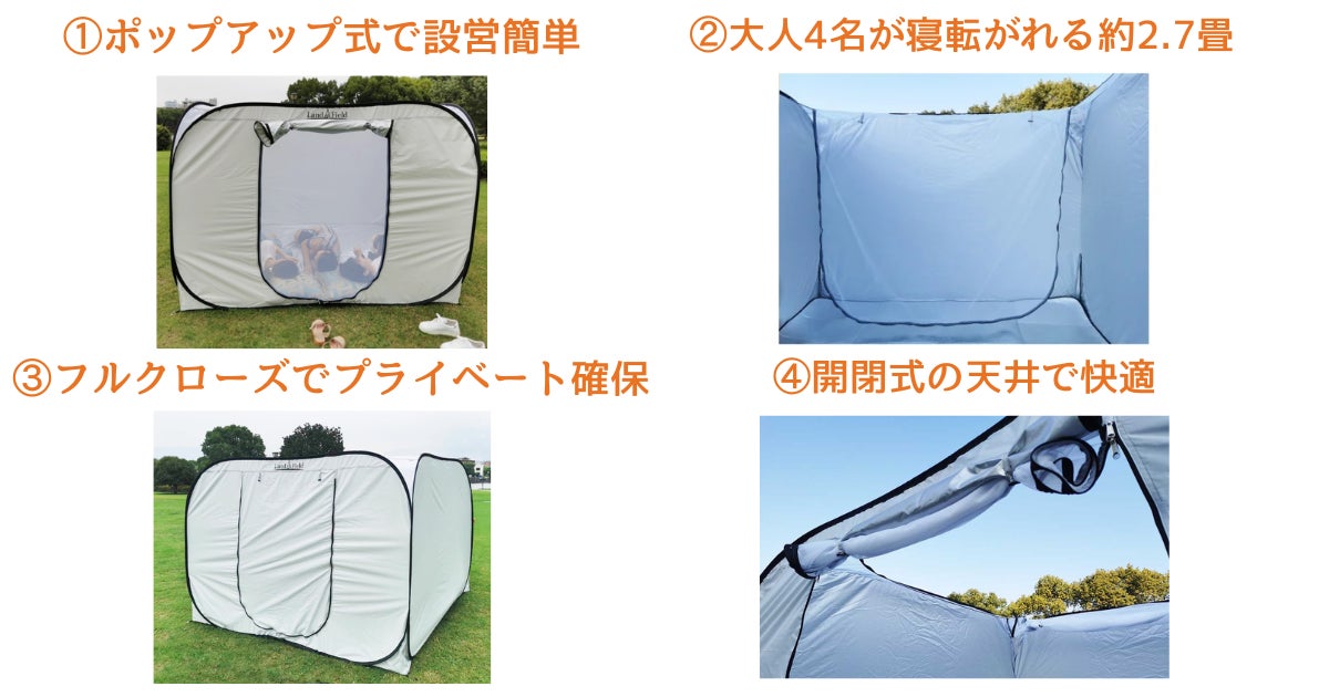 プライベート空間を確保できるポップアップ式テント3月下旬に販売開始予定