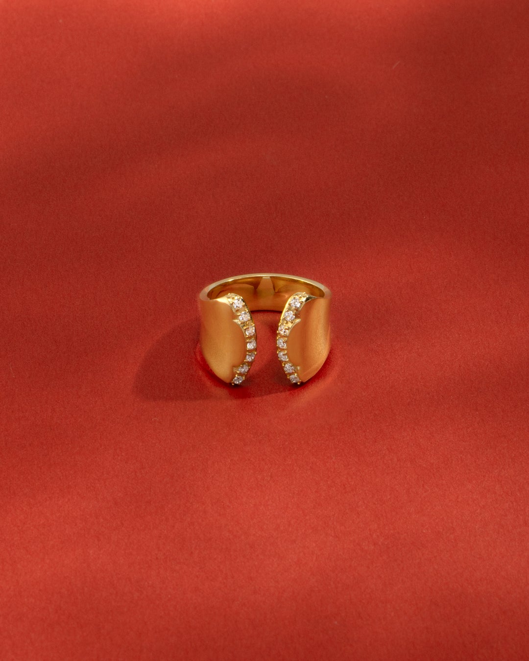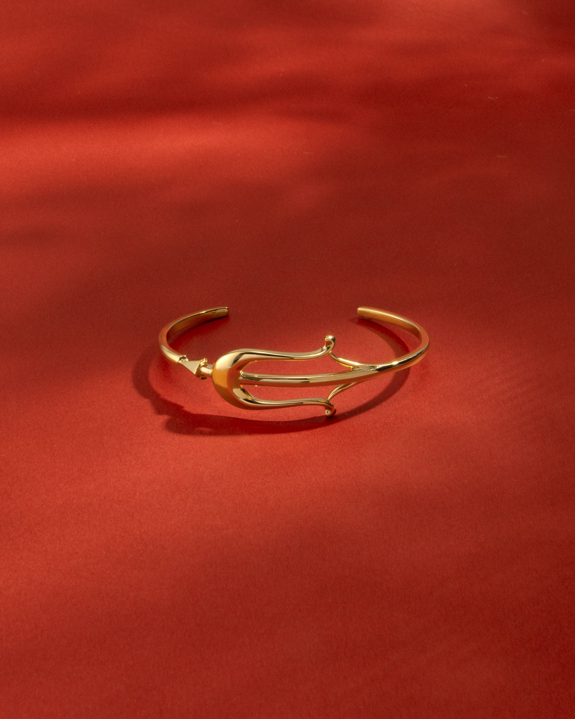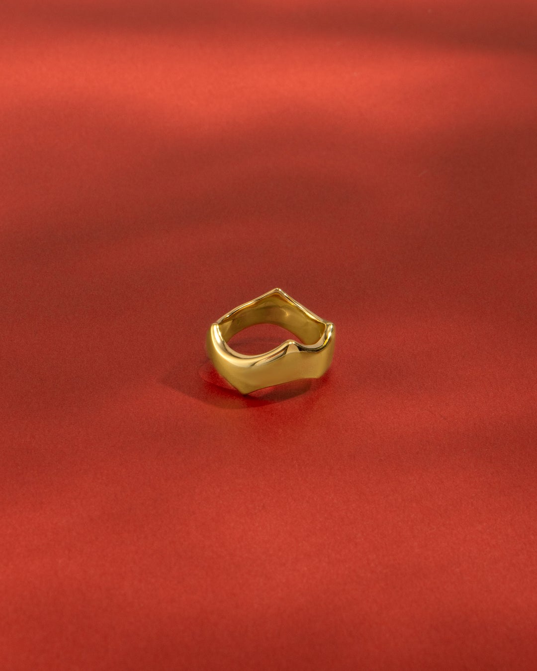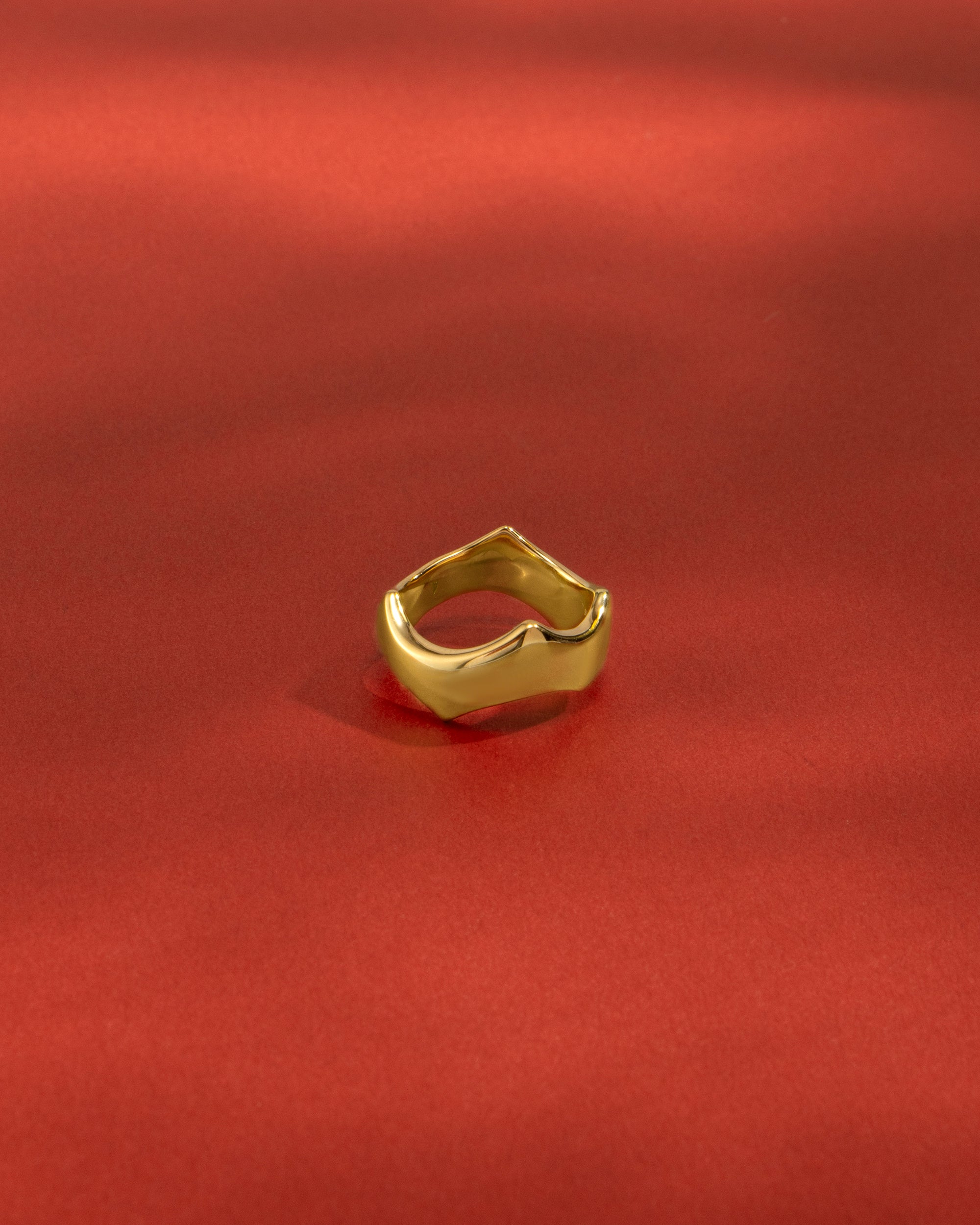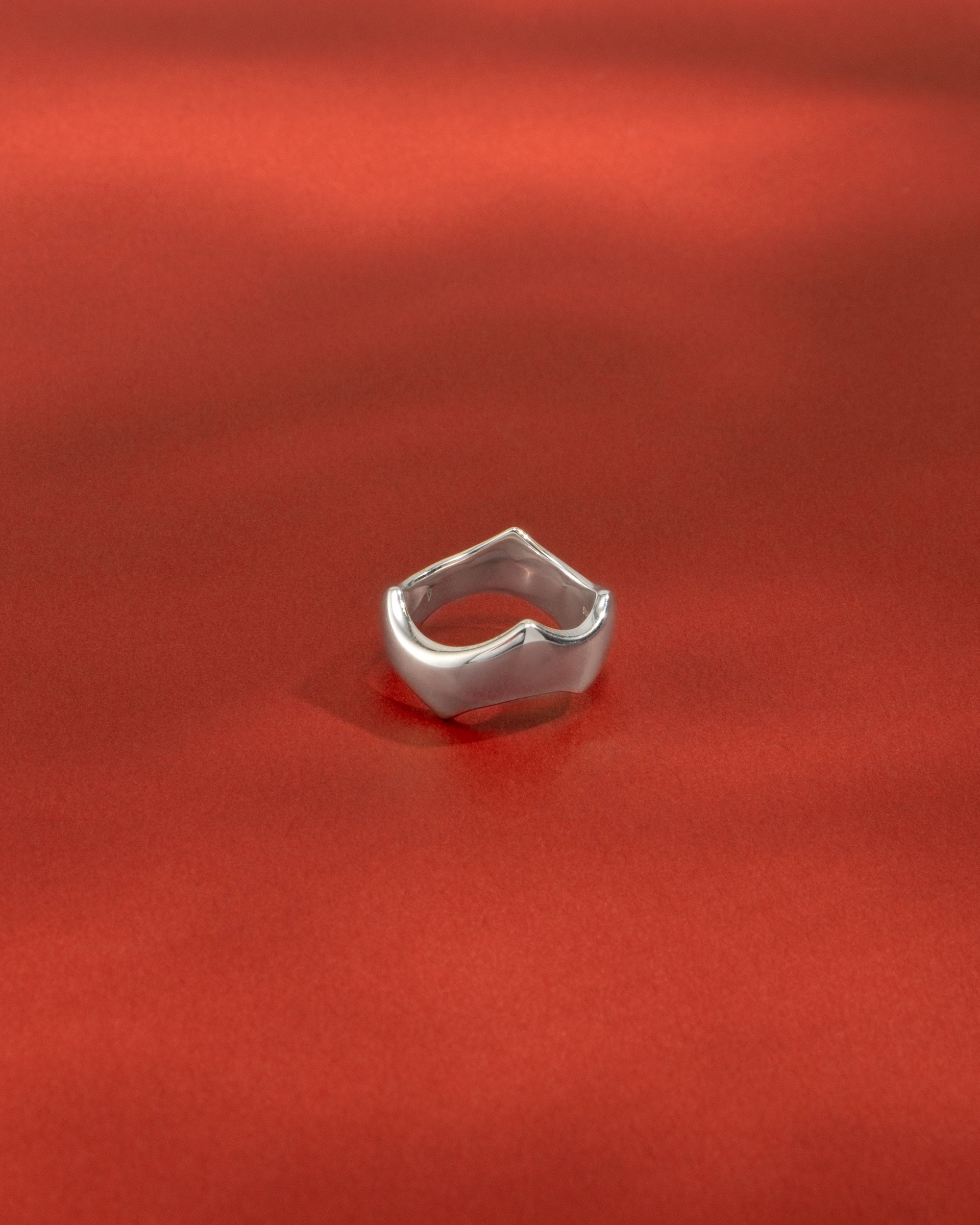 艶やかに磨かれた地金の表面は、反るようにカーブをつけることでボリュームが