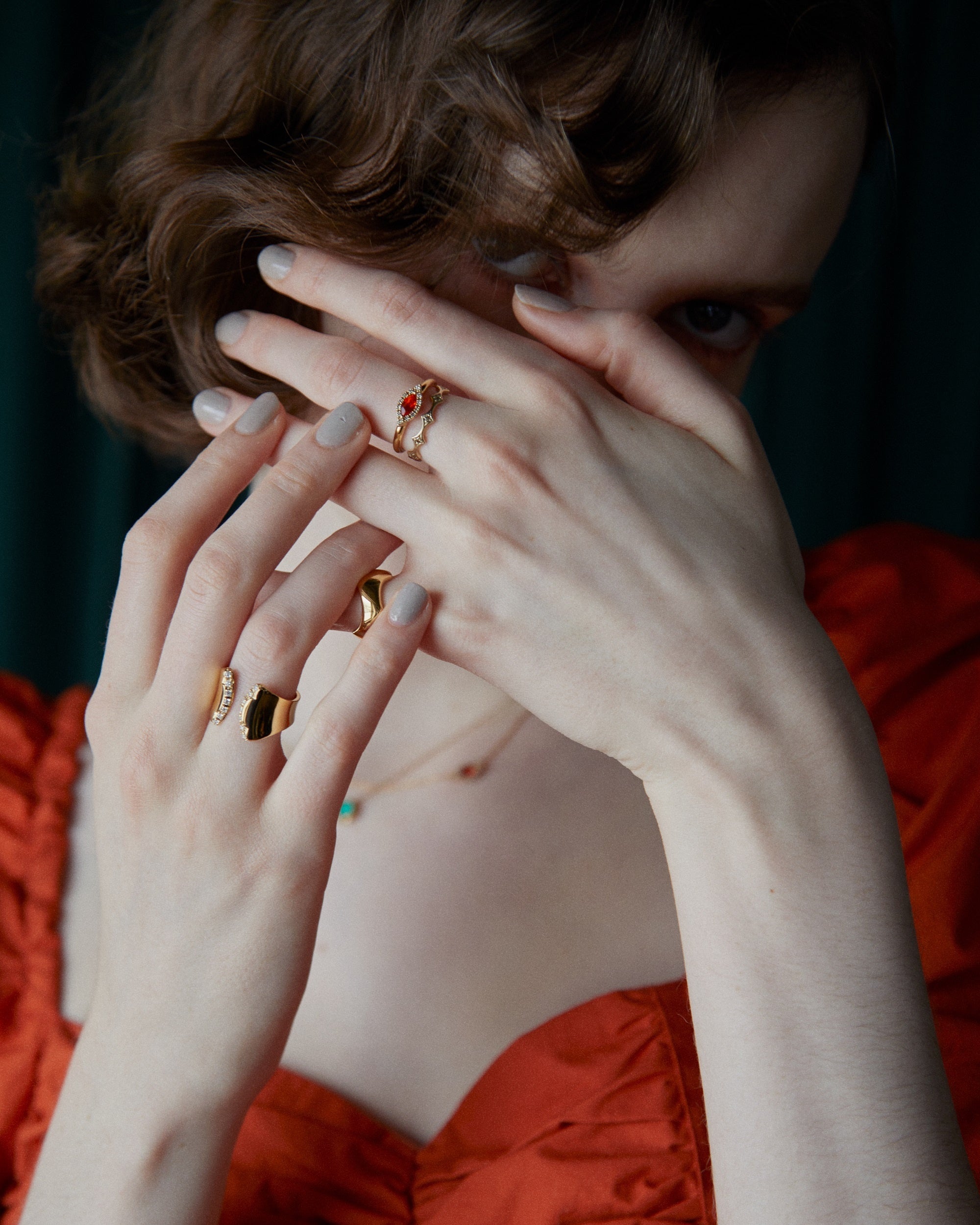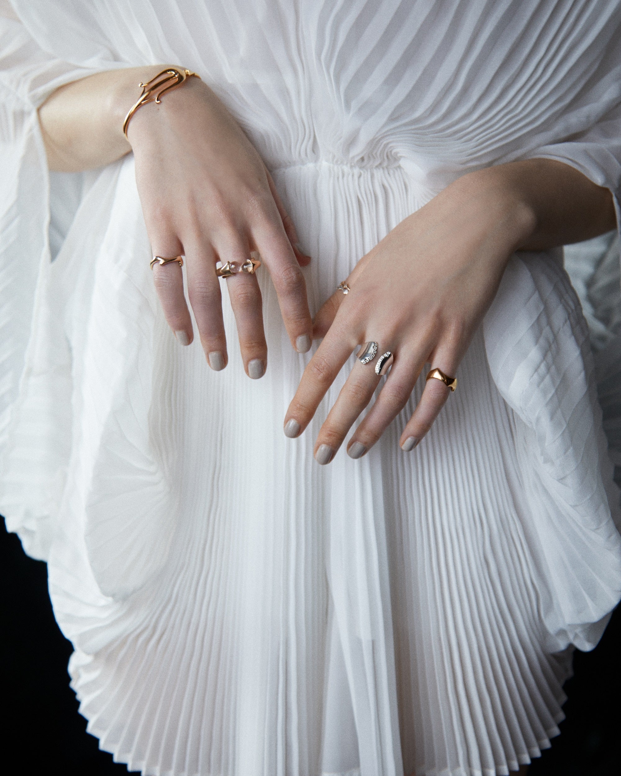 印象的な手元を演出するピンキーリング。