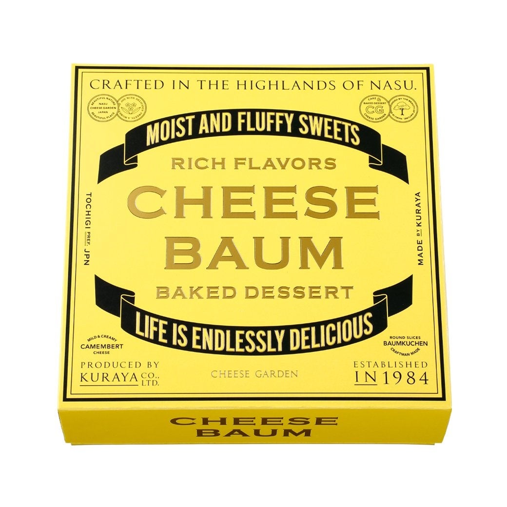『チーズバウム』は、2022年冬の発売より、幅広い年代の方から愛されているチーズガーデンの人気の焼菓子のひとつです。国産の卵とクリーミーなカマンベールチーズを使用することで、濃厚なチーズの風味が楽しめるチーズガーデンならではの一品です。職人がバウムクーヘン専用の釜で、一層一層丁寧に、厚みや焼き色を見ながら焼き上げており、機械だけに頼らずに、職人の目と手によって仕上げることで、きれいな焼き色や優しい口どけを実現しています。また、保存料不使用でありながら、未開封の状態で常温保管が可能であり、製造から60日と日持ちがよいことから、ご自宅でのスイーツタイムはもちろん、贈り物や手土産、おもてなしにもぴったりな定番商品です。