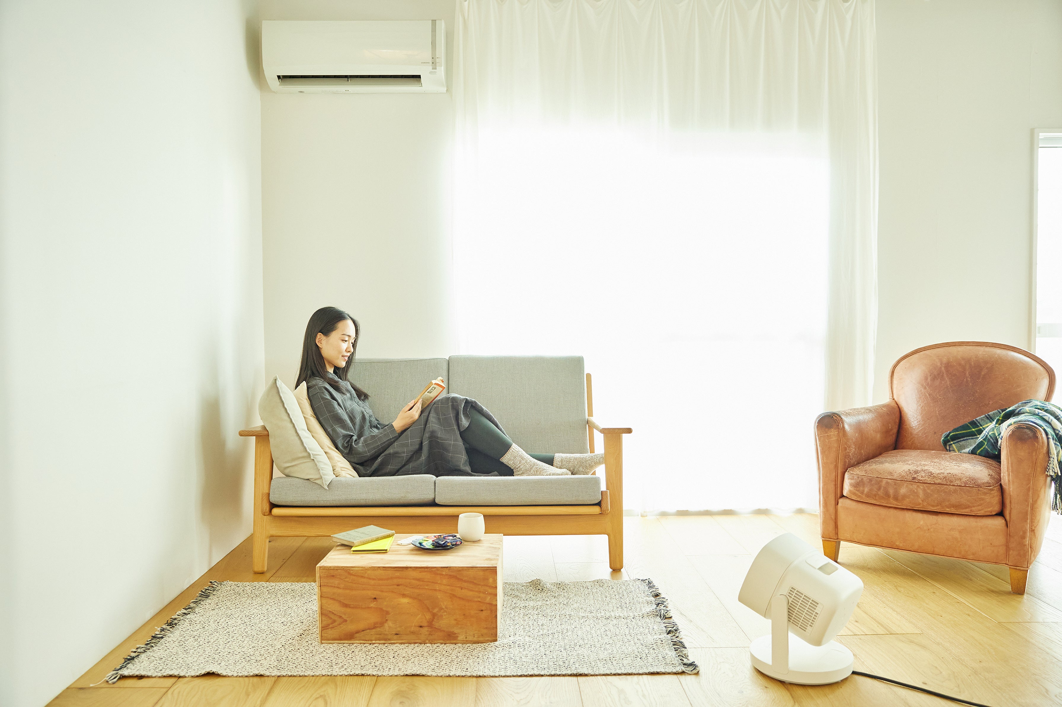 お部屋の空気を循環させる「サーキュレーションモード」を搭載。エアコンと併用することで、より快適な室内空間を作る“エアコンサポート”を実現します。特に、冬場にエアコンを使う際のお悩みとして挙げられるのが、あたたかい空気がお部屋の上にたまってしまうこと。せっかくお部屋をあたためていても、サーキュレーターで空気循環を行うと、送風で身体がひんやりしてしまうことも。ポカクールのサーキュレーションモードは送風と温風が選べるため、冬場には温風を使用することで、お部屋や身体を冷やすことなく効率的に空気循環ができ、節電にもつながります。