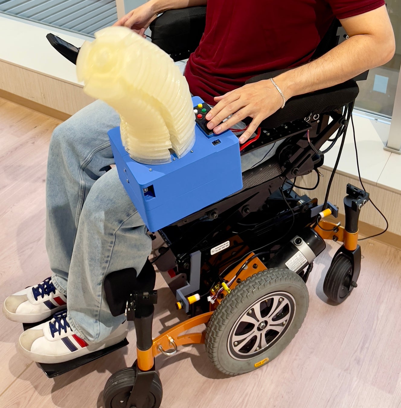 「腕の動作に困難のある車椅子利用者のための、折り畳め、低圧で動き、可動範囲も広く、実用性が高いソフトロボットアームです。実際の施設でのユーザーテストで、当事者のニーズやフィードバックを得ながら開発されている点も素晴らしいです。」