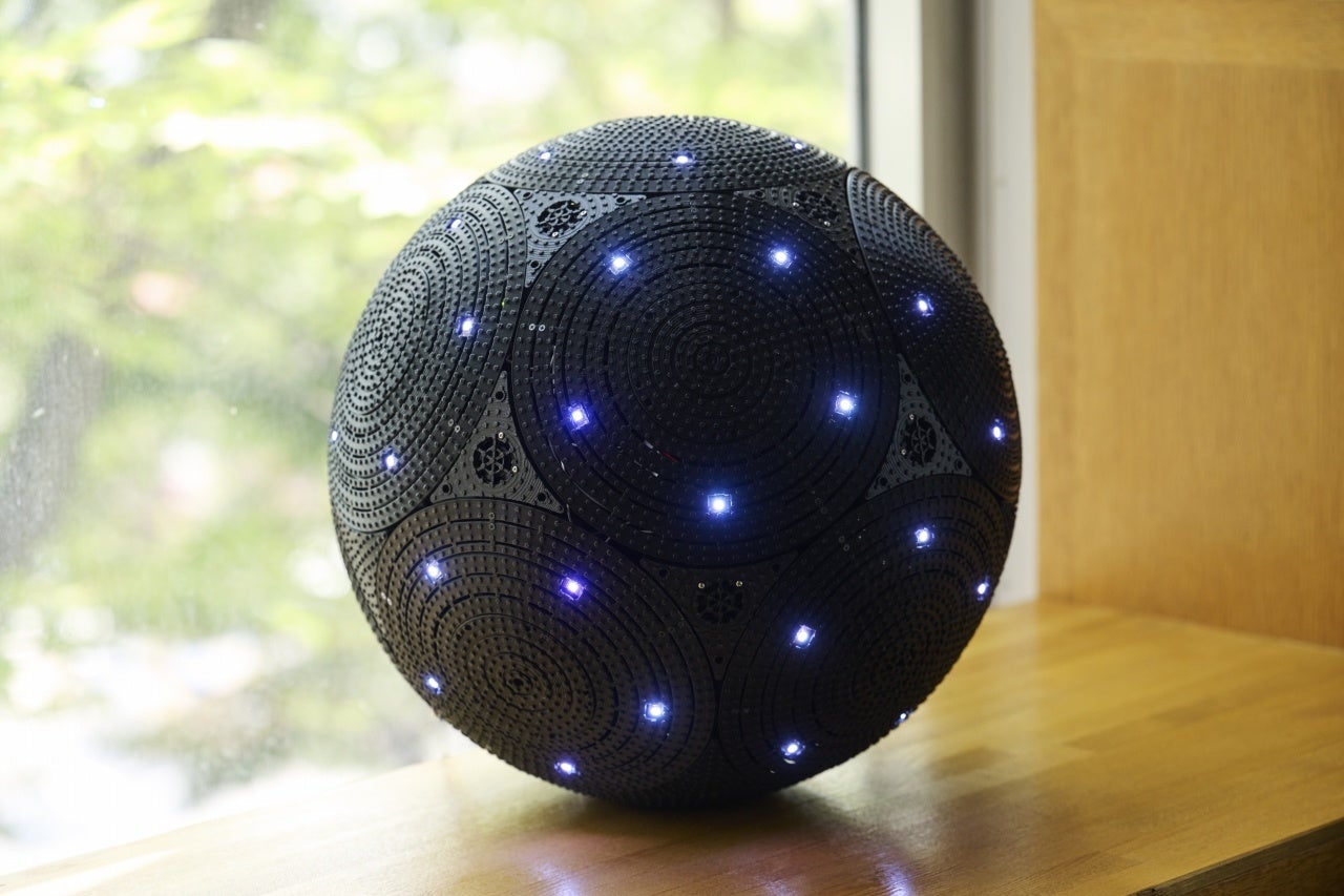 開発初期の課題は、球体の外殻の機構と内部の駆動機構の両方を成り立たせる構造を見つけることでした。外殻は滑らかに回転できる形状である一方、内部機構は大きなねじ構造を含むため、限られたスペースで強度と可動域を両立させる必要がありました。この問題に対して、複数の試作モデルを通じて部品配置や寸法の組み合わせを検証し、構造と機能のバランスを取る方向性を見いだしました。 |