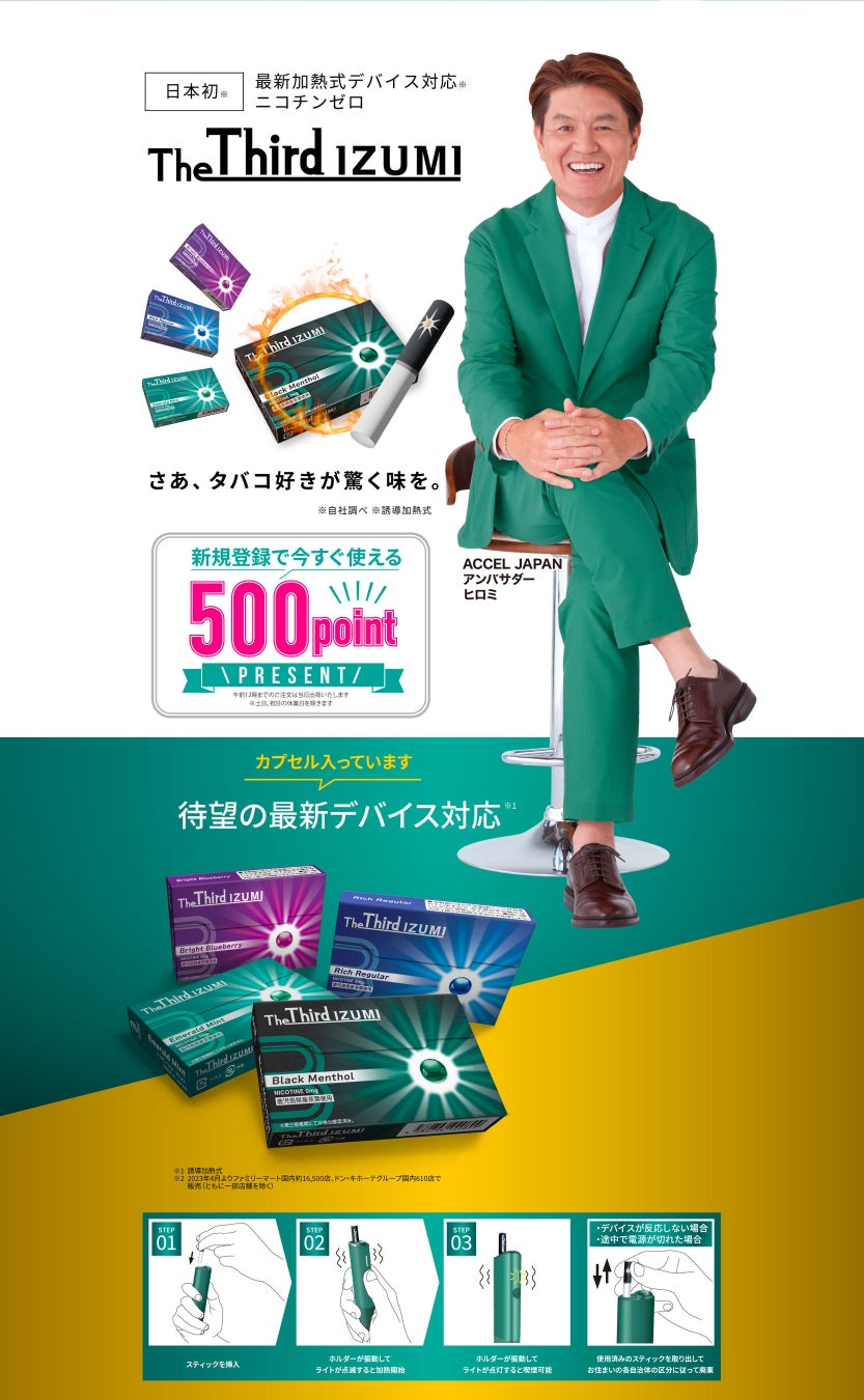 日本初※1ノンニコチンスティック「The Third IZUMI」を製造するFuture Technology株式会社はアクセルジャパンに参画し、アンバサダーヒロミさんを用いたプロモーション活動を開始